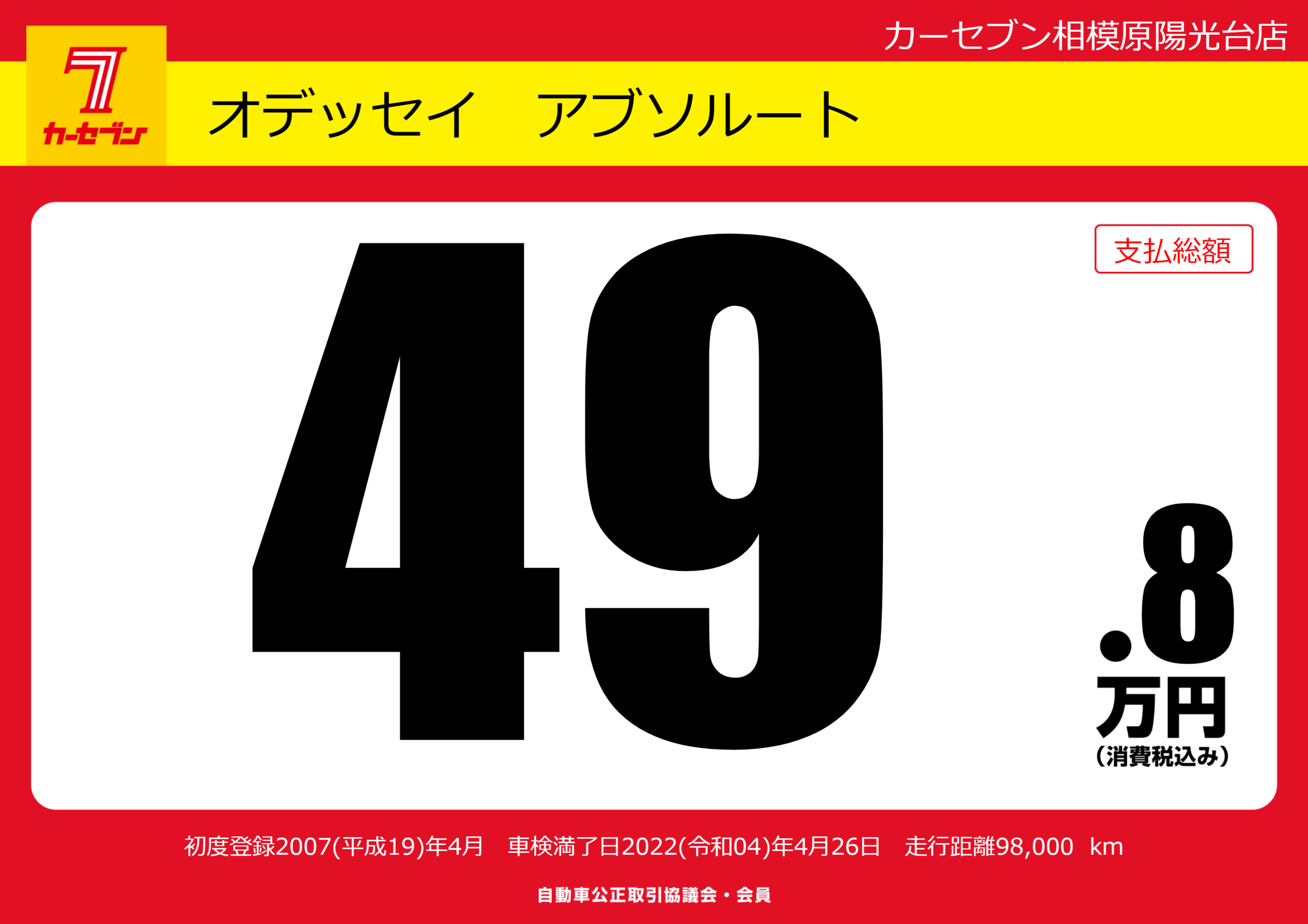 | 車名 | オデッセイ アブソルート | グレード ミッション 排気量 |