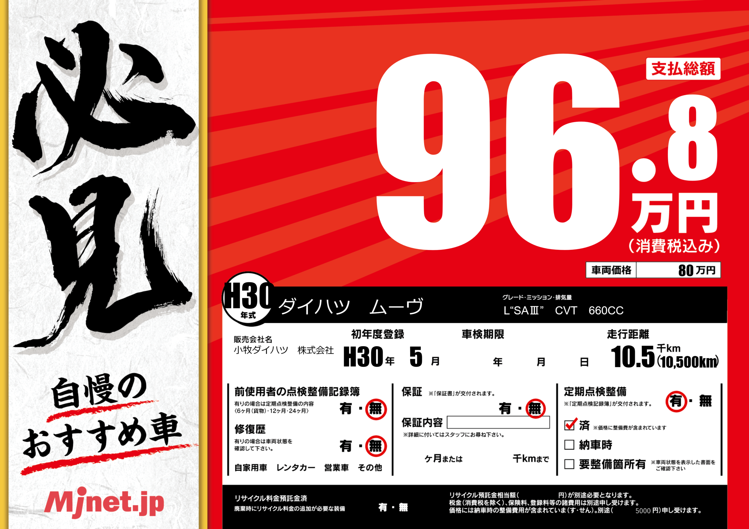 | 定期点検整備 | 定期点検整備あり 定期点検整備済み | ||