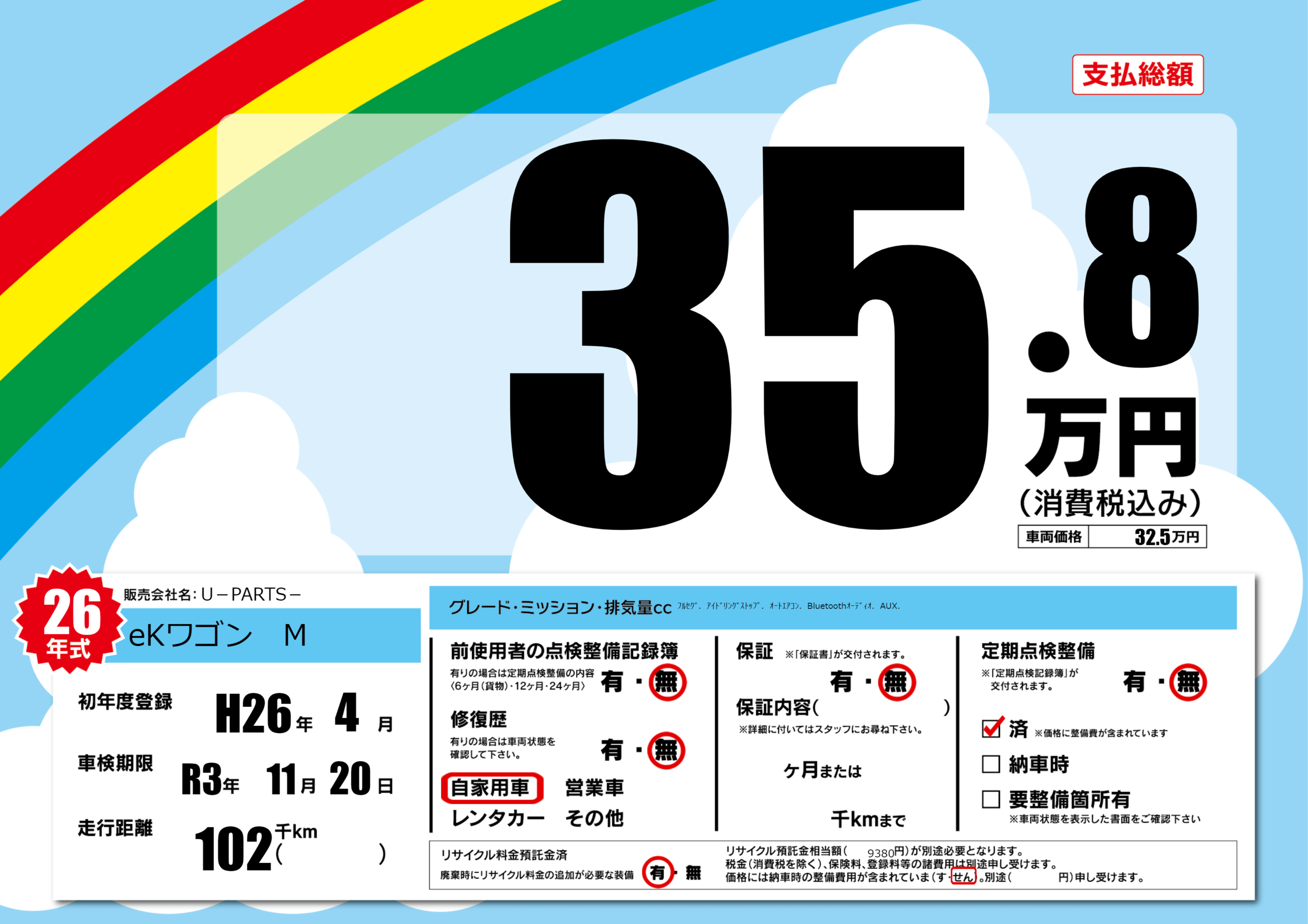 | 定期点検整備 | 定期点検整備なし 定期点検整備済み | ||