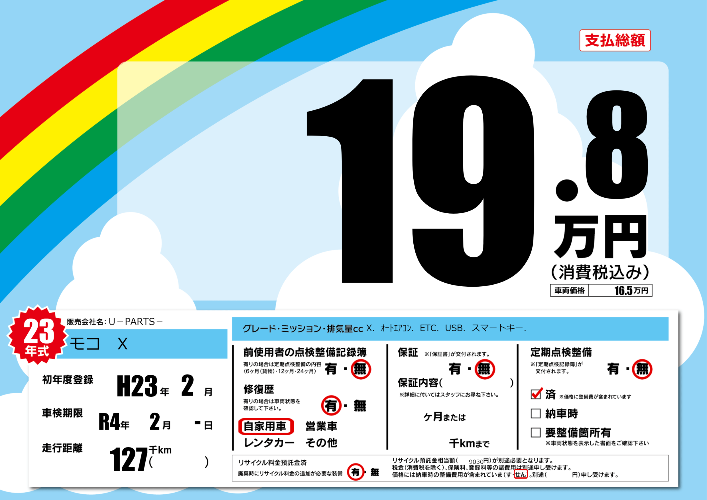 | 車名 | モコ X | グレード ミッション 排気量 |