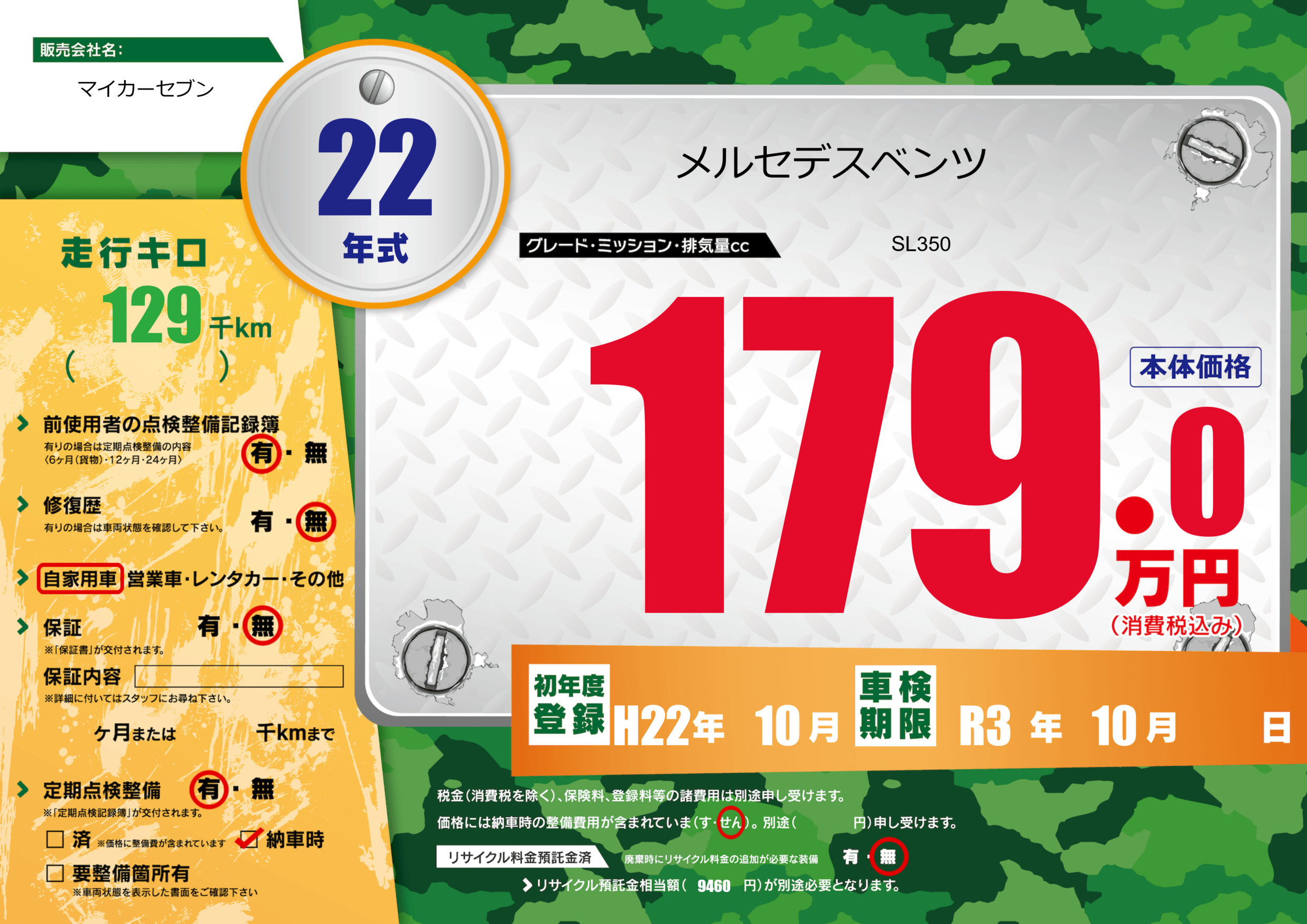 車検制限 R3年 10月 - 日