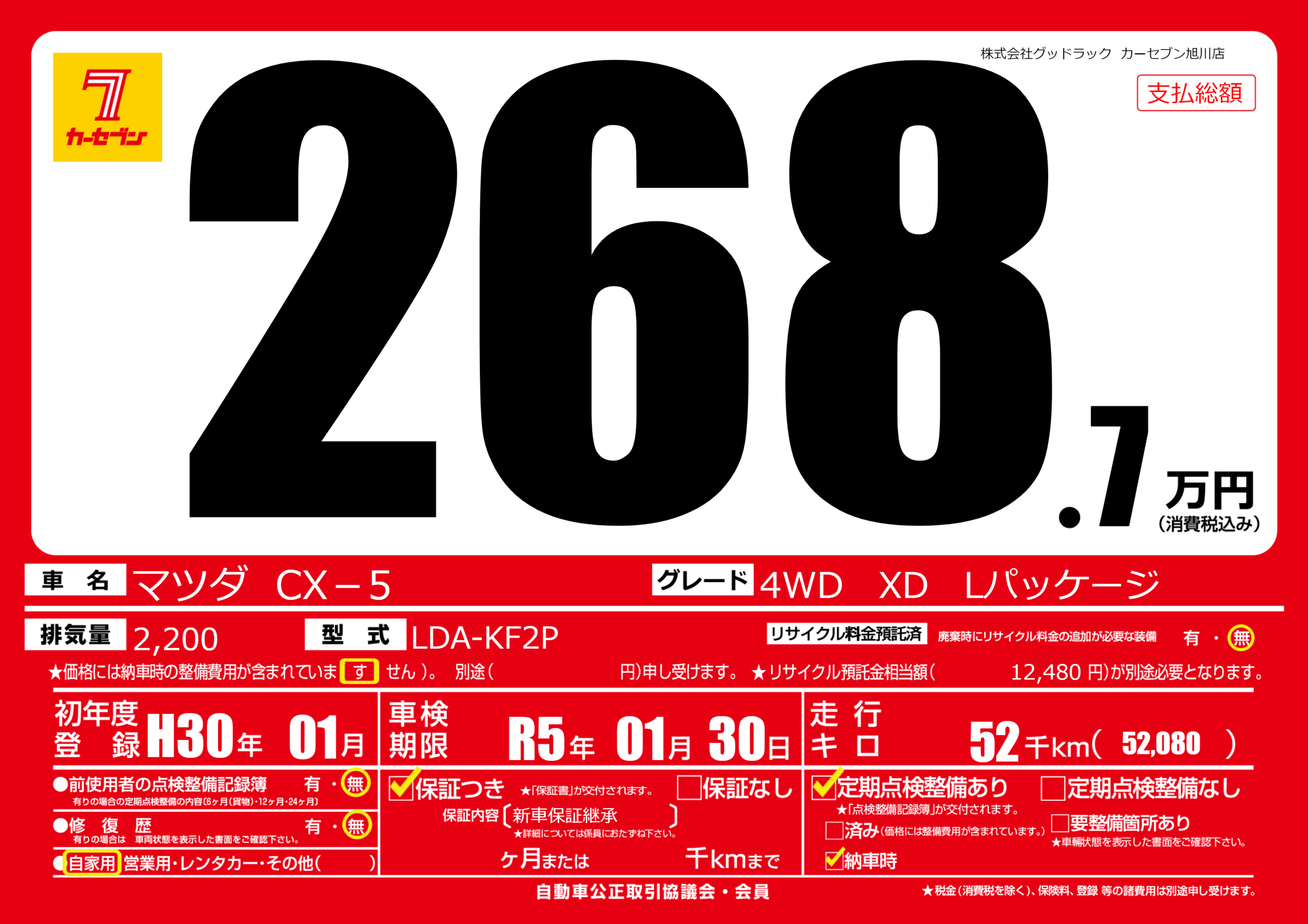 | 車名 | マツダ CX-5 | グレード ミッション 排気量 |