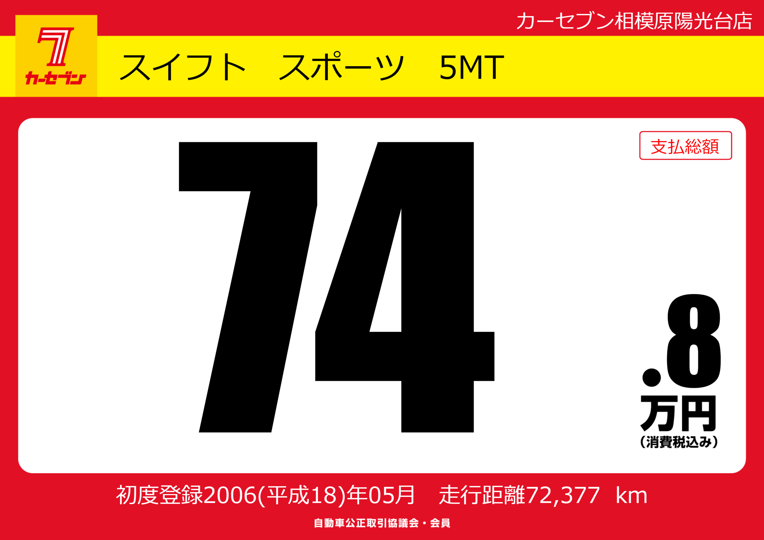 | 車名 | スイフト スポーツ 5MT | グレード ミッション 排気量 |