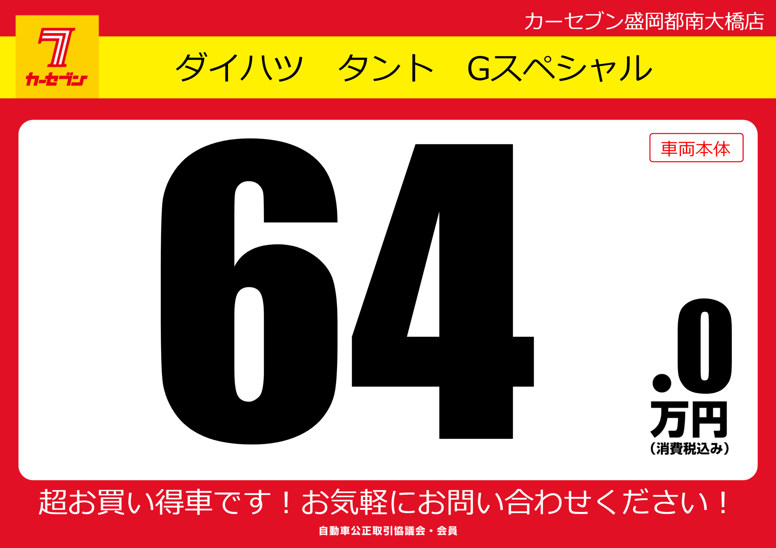 | 車名 | ダイハツ タント Gスペシャル | グレード ミッション 排気量 |