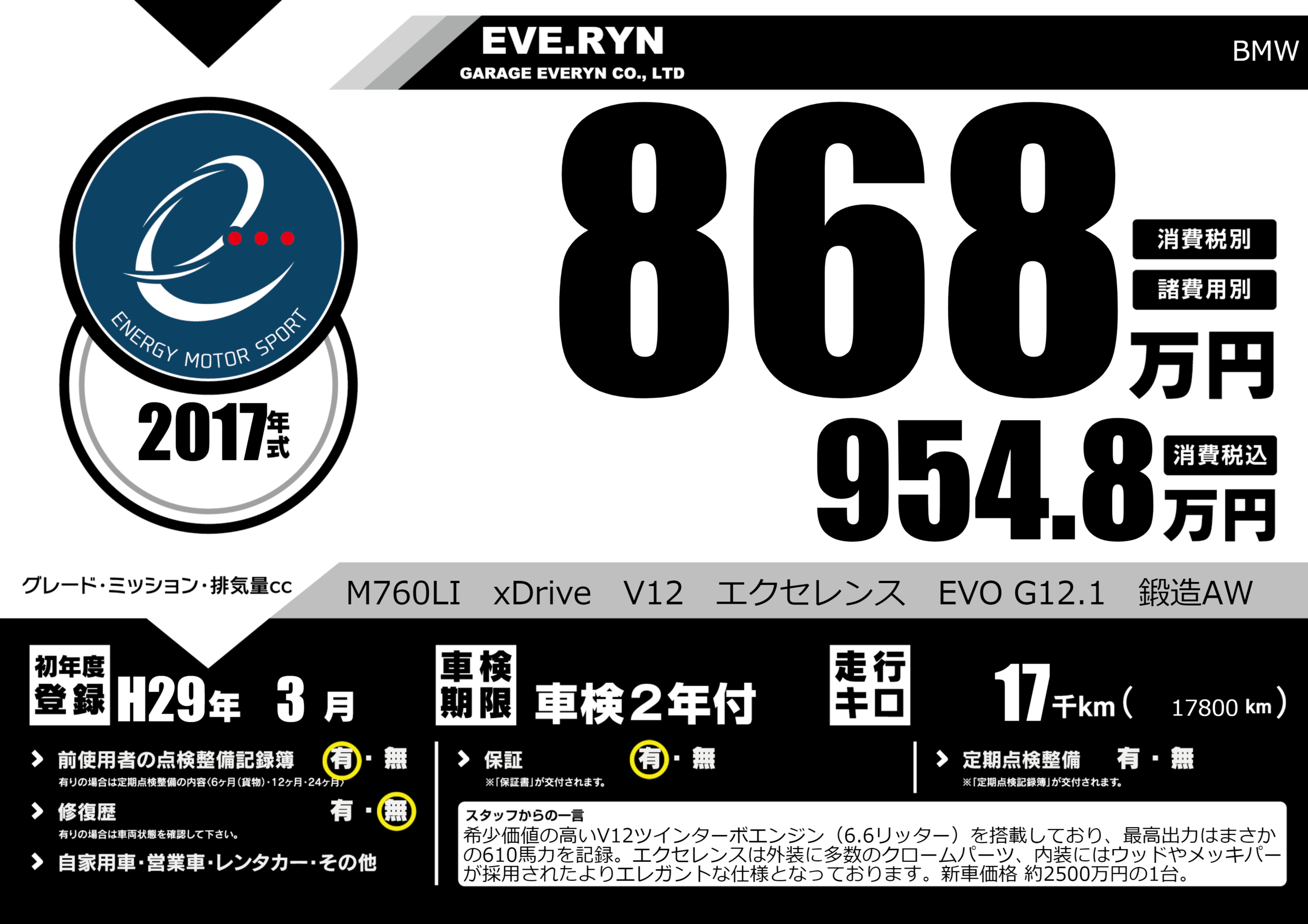 M760LI xDrive V12 エクセレンス EVO G12.1 鍛造AW |