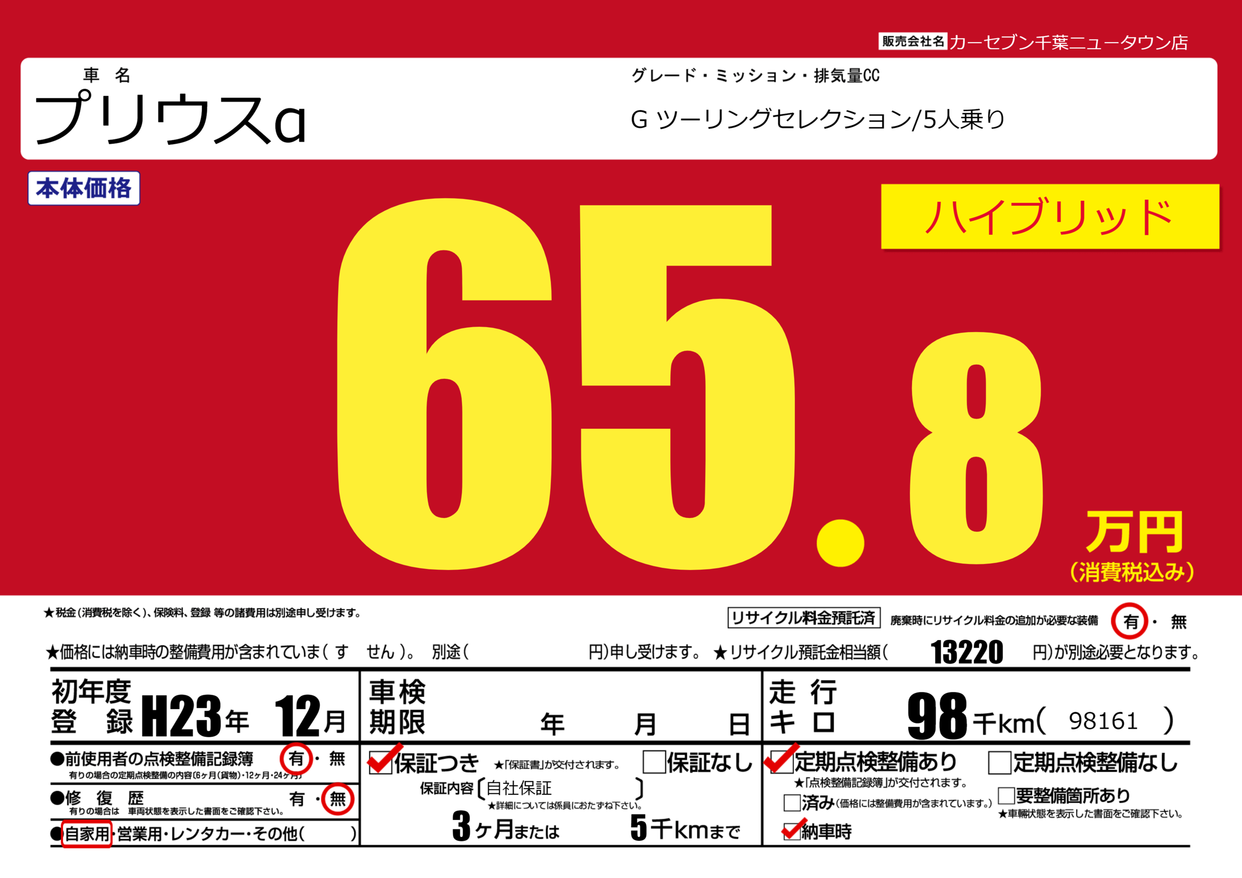 保証付き 保証内容(自社保証) 3ヶ月または(5)千kmまで |