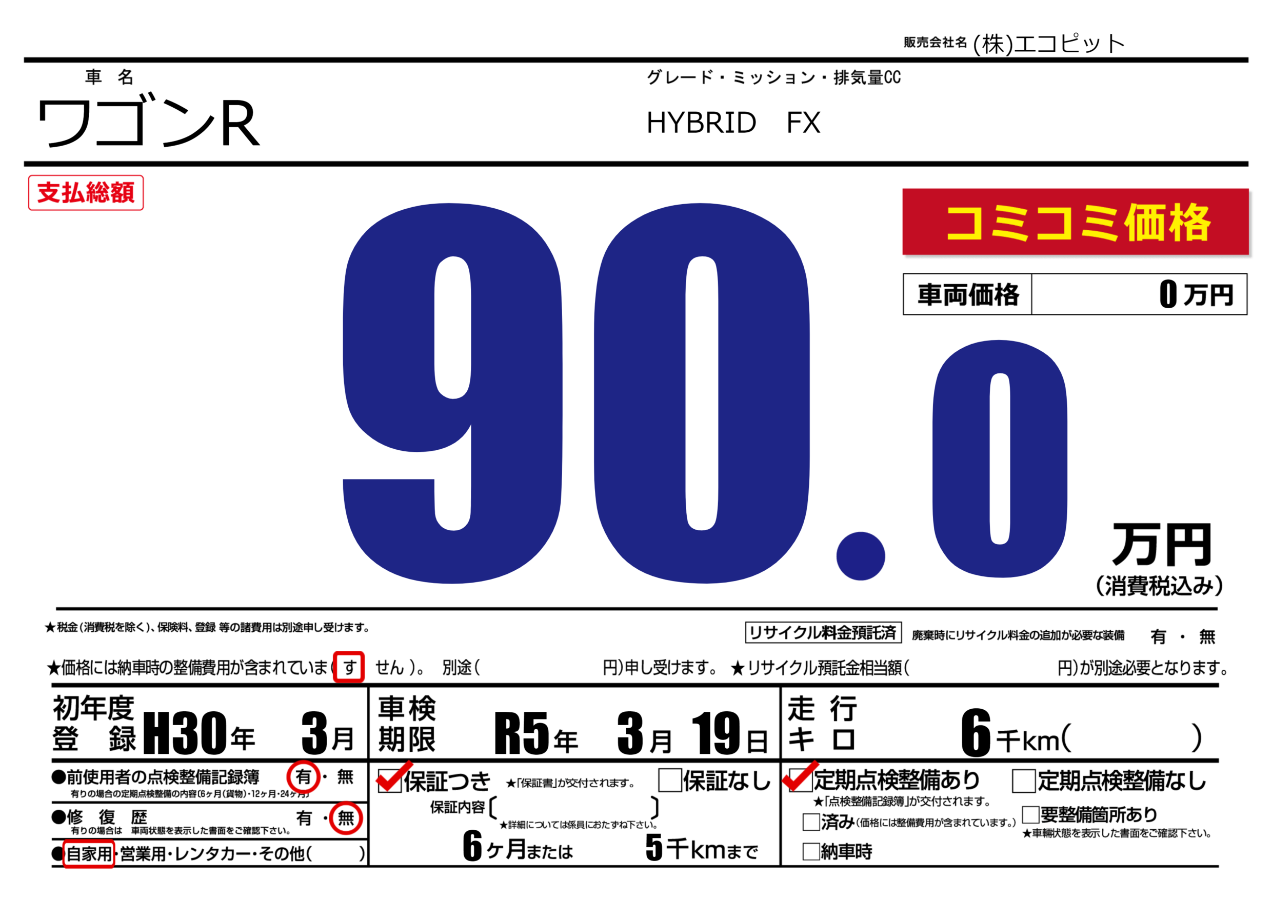 保証付き 保証内容(---) 6ヶ月または(5)千kmまで |