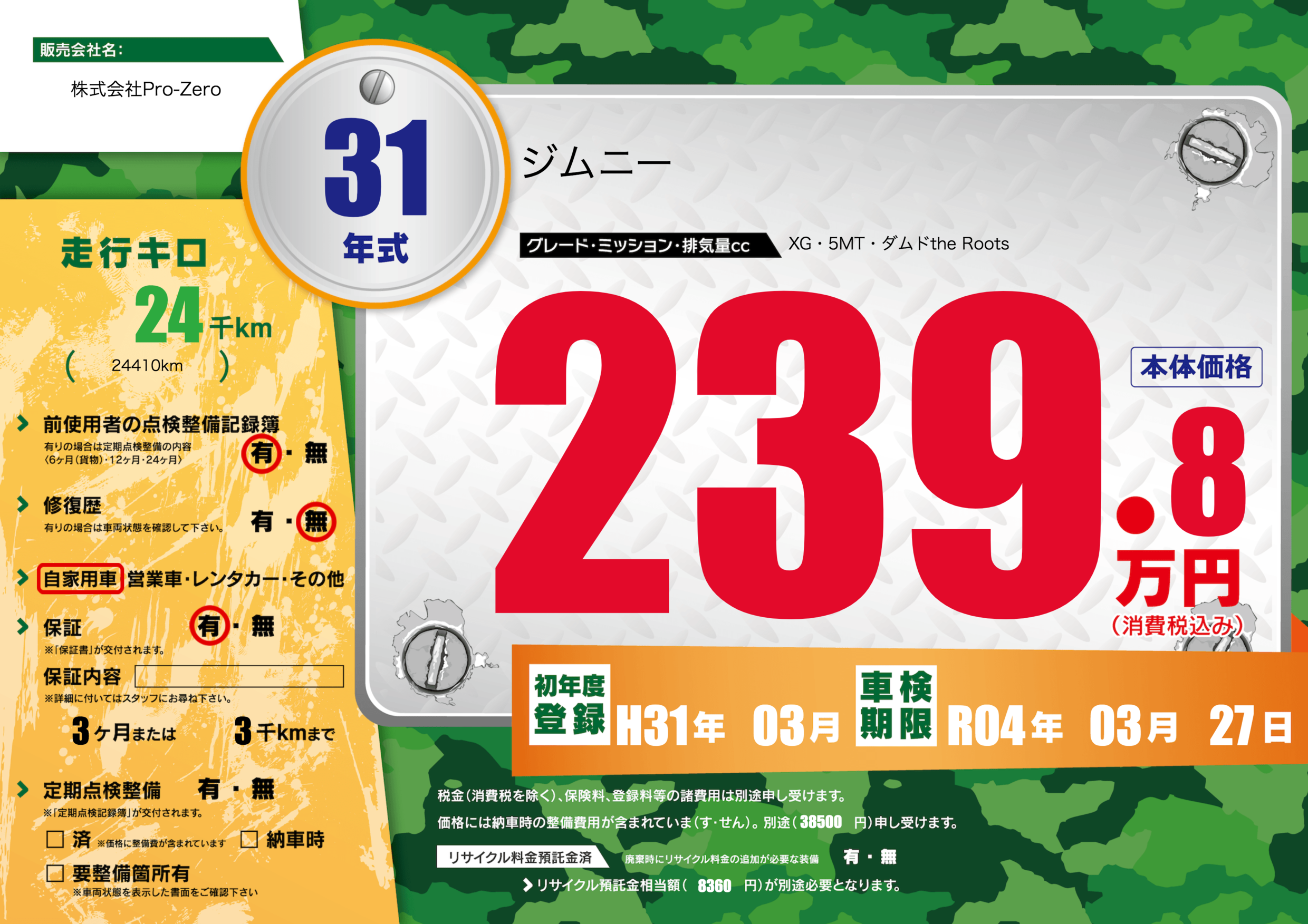 | 車検制限 | R04年 03月 27日 | ||