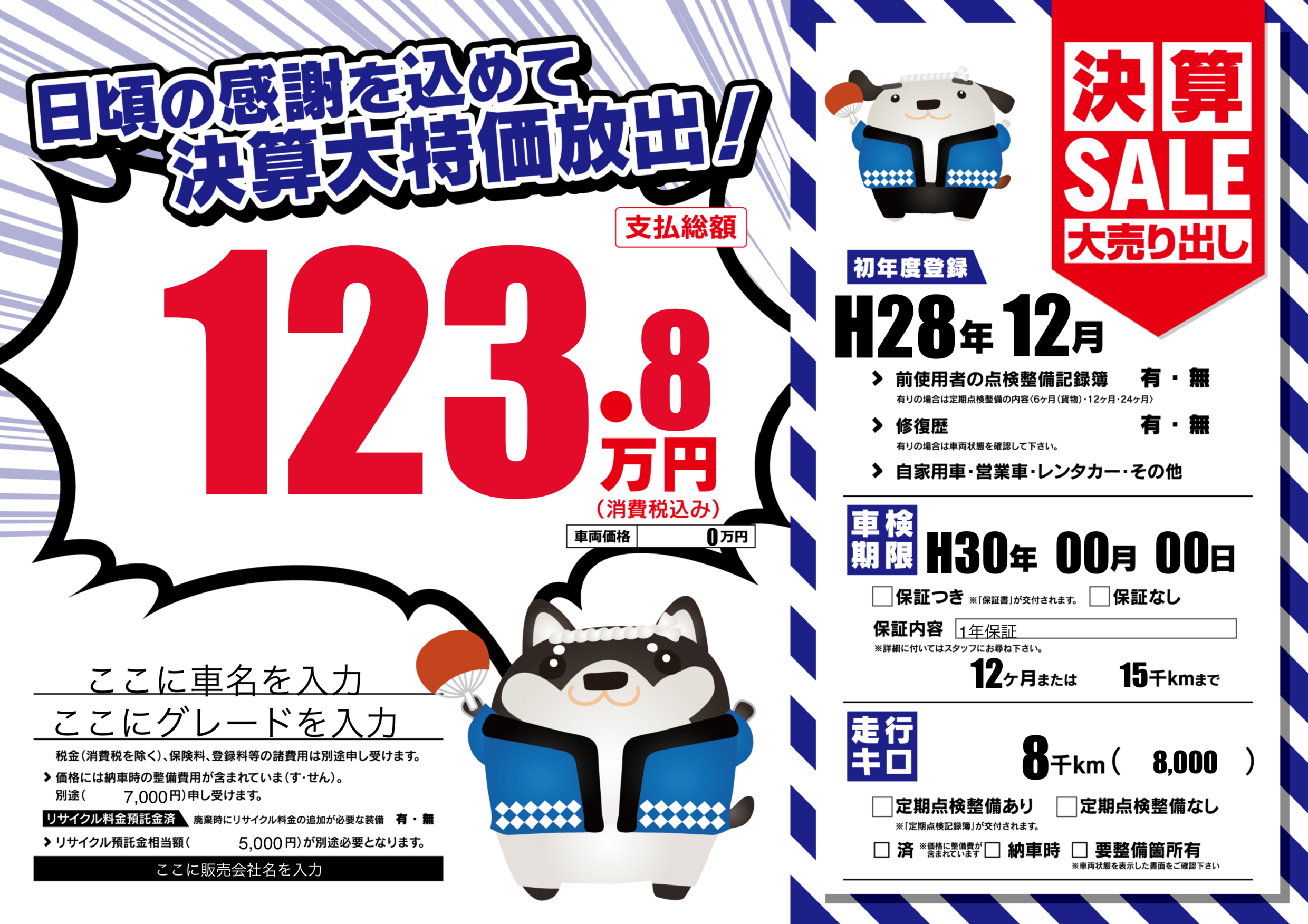 | 車検制限 | H30年 00月 00日 | ||