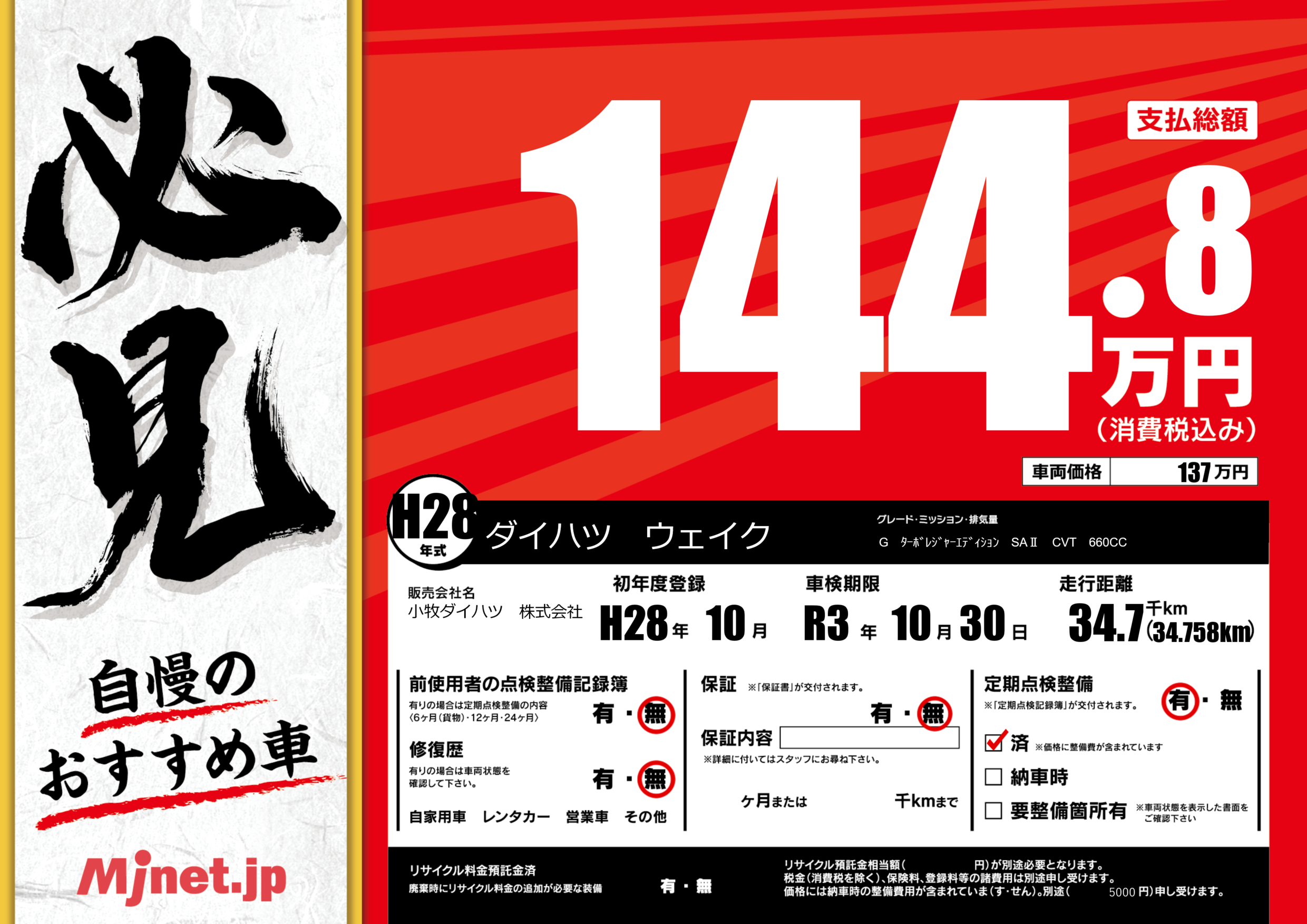 | 定期点検整備 | 定期点検整備あり 定期点検整備済み | ||