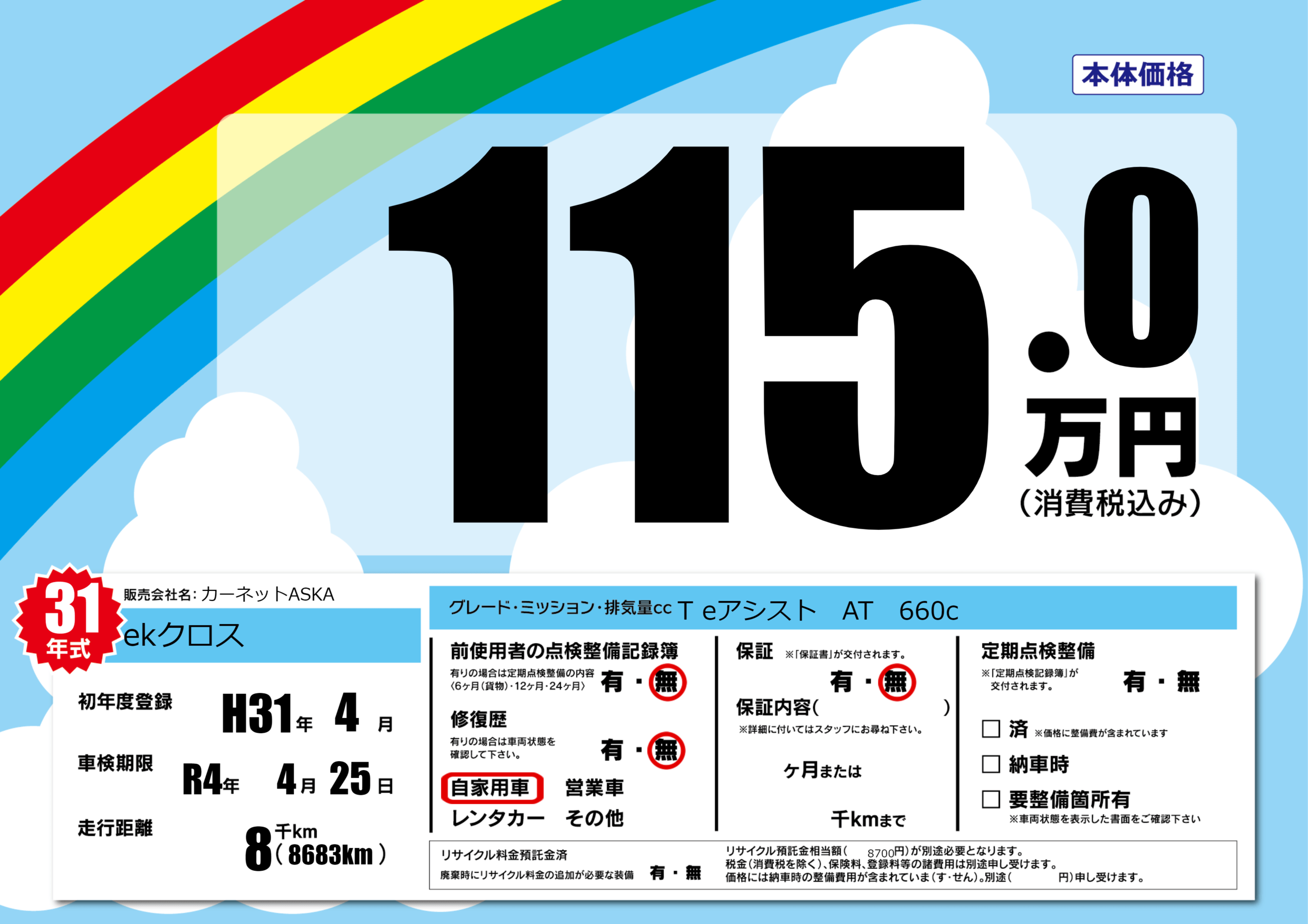 | 車名 | ekクロス | グレード ミッション 排気量 |