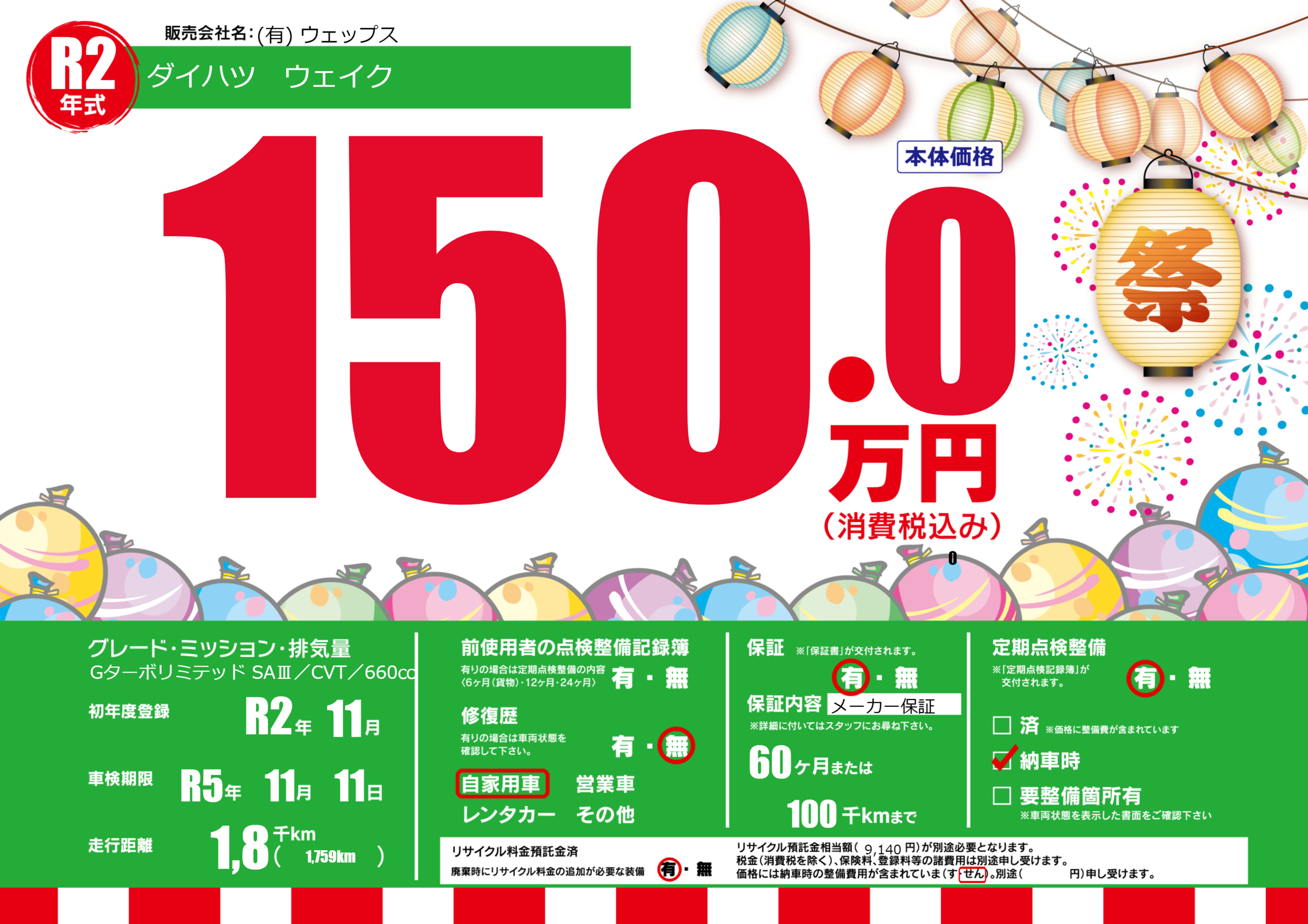 なし | 車検制限 | R5年11月11月 |