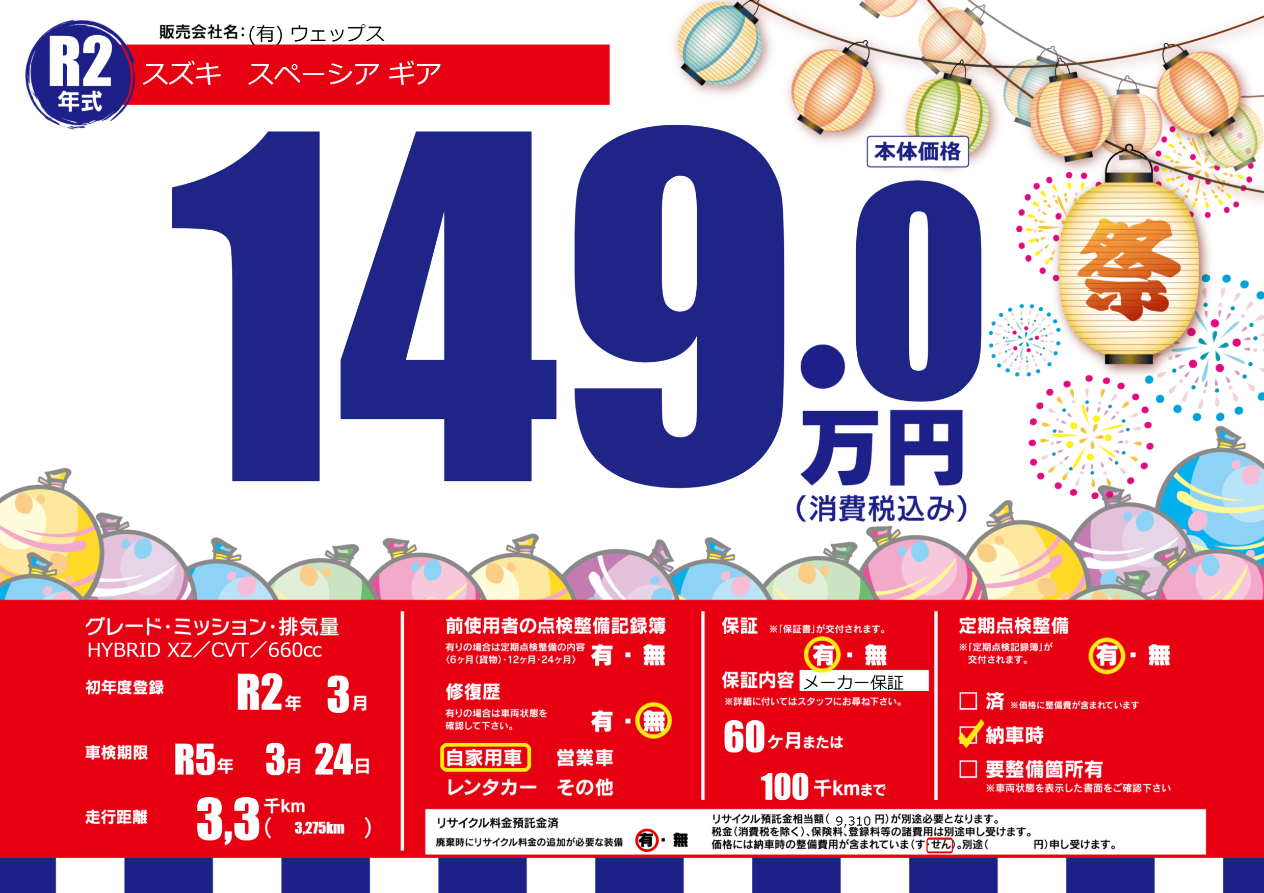 なし | 車検制限 | R5年3月24月 |