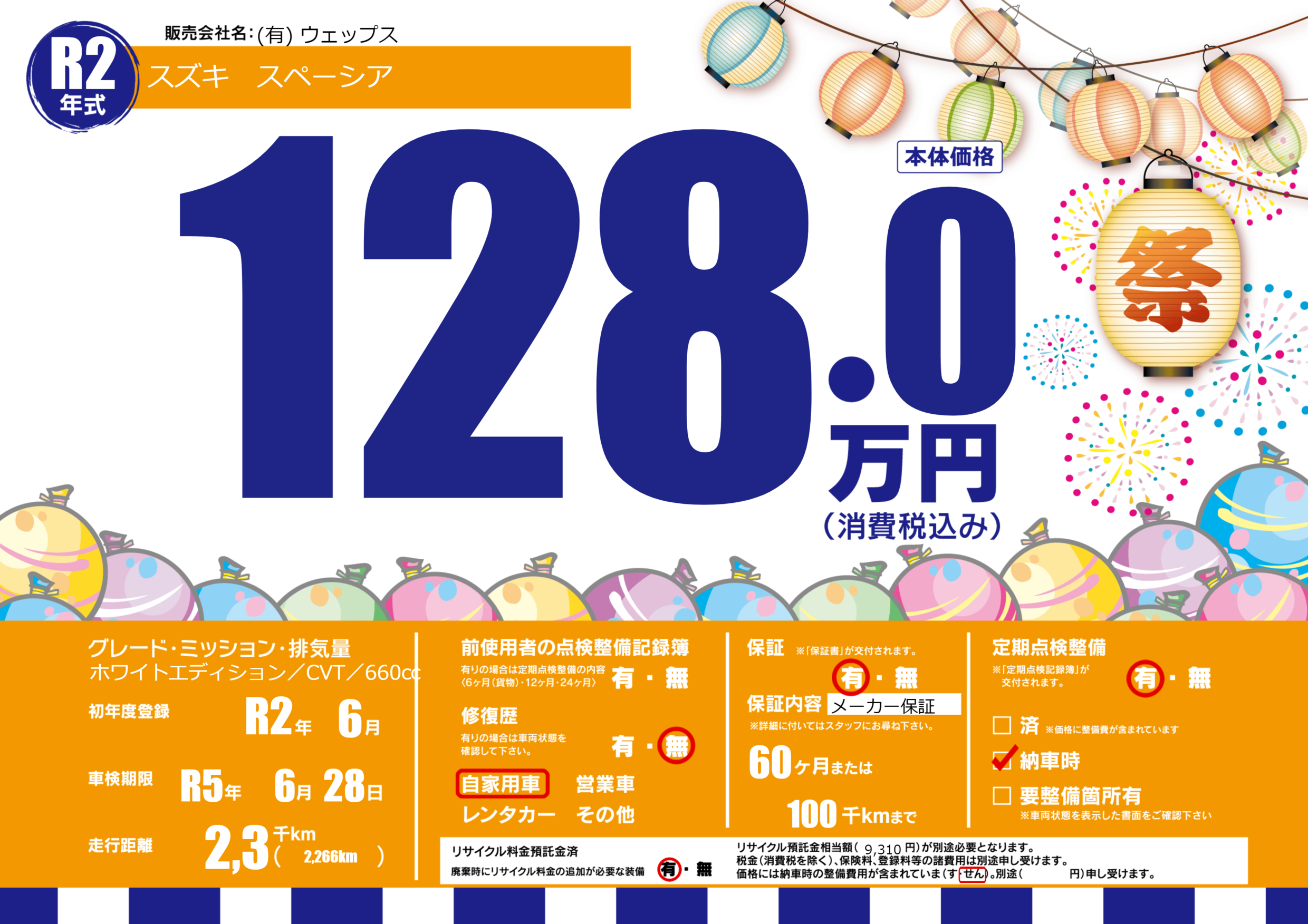 | 車名 | スズキ スペーシア | グレード ミッション 排気量 |