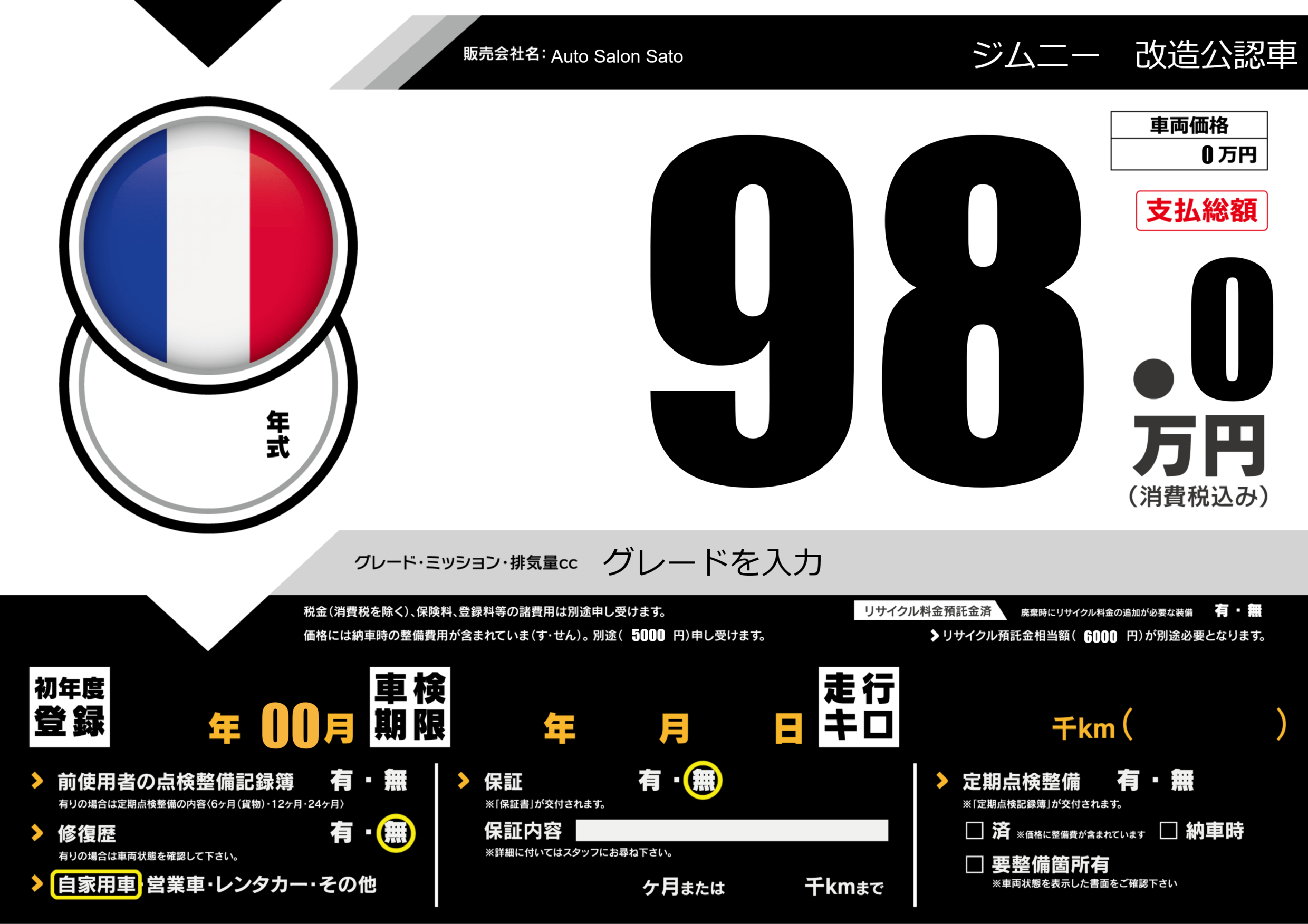 | 車名 | ジムニー 改造公認車 | グレード ミッション 排気量 |