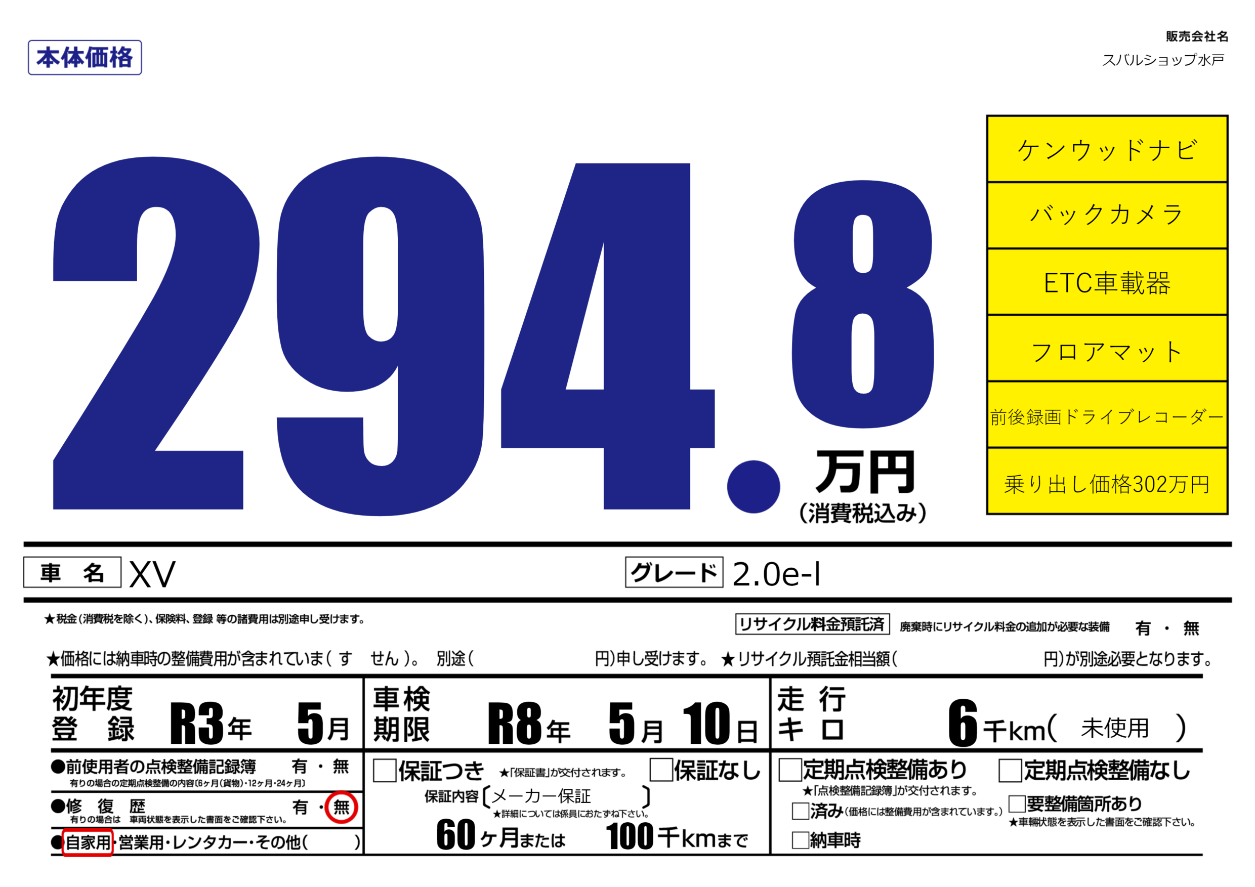 | 走行キロ | 0.6万km | 初年度登録 | R3年5月 |
