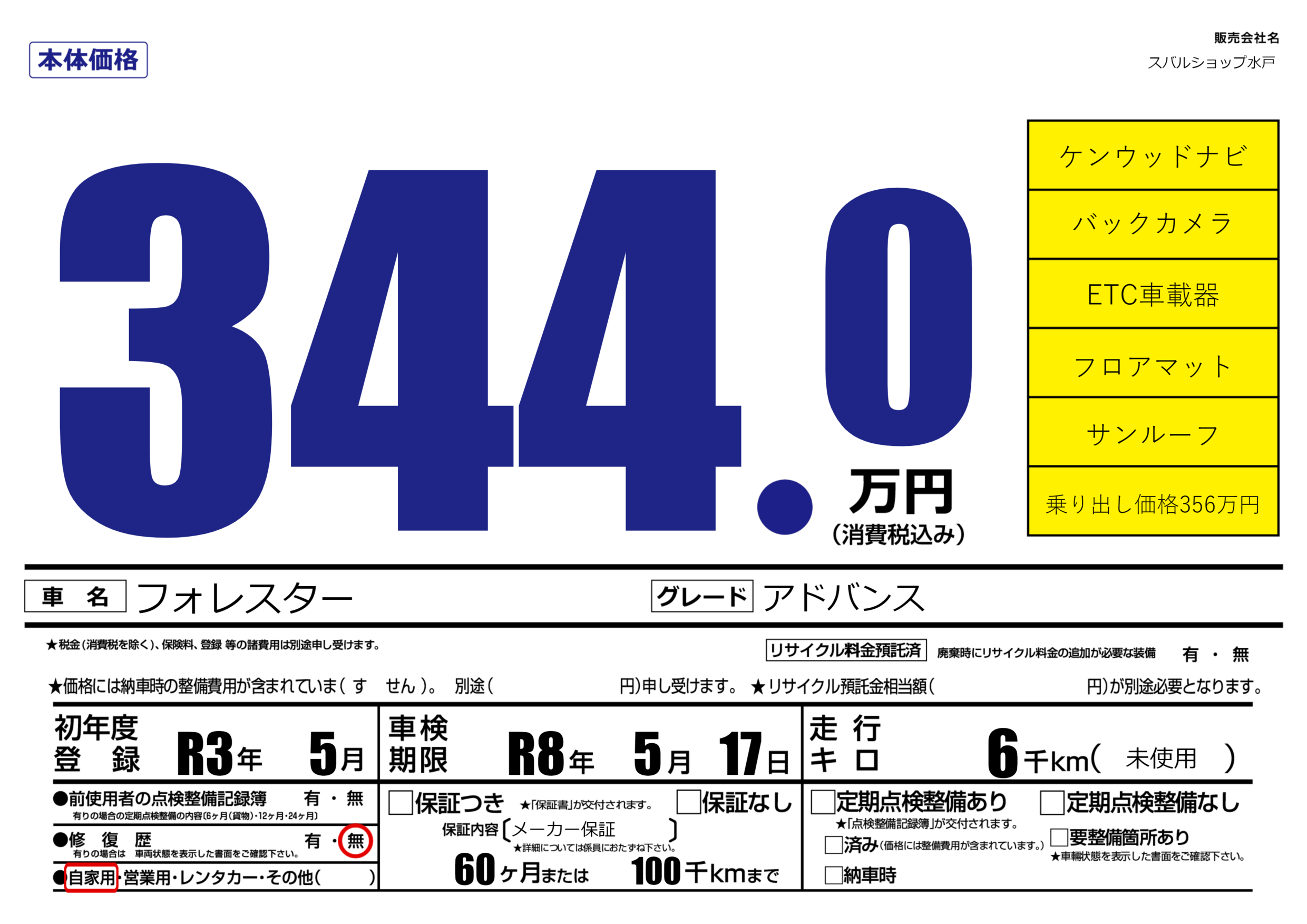 | 走行キロ | 0.6万km | 初年度登録 | R3年5月 |