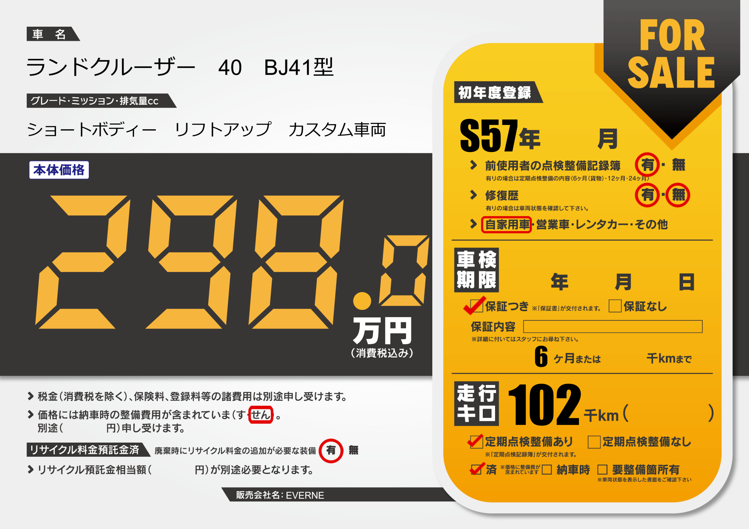 | 車名 | ランドクルーザー 40 BJ41型 | グレード ミッション 排気量 |