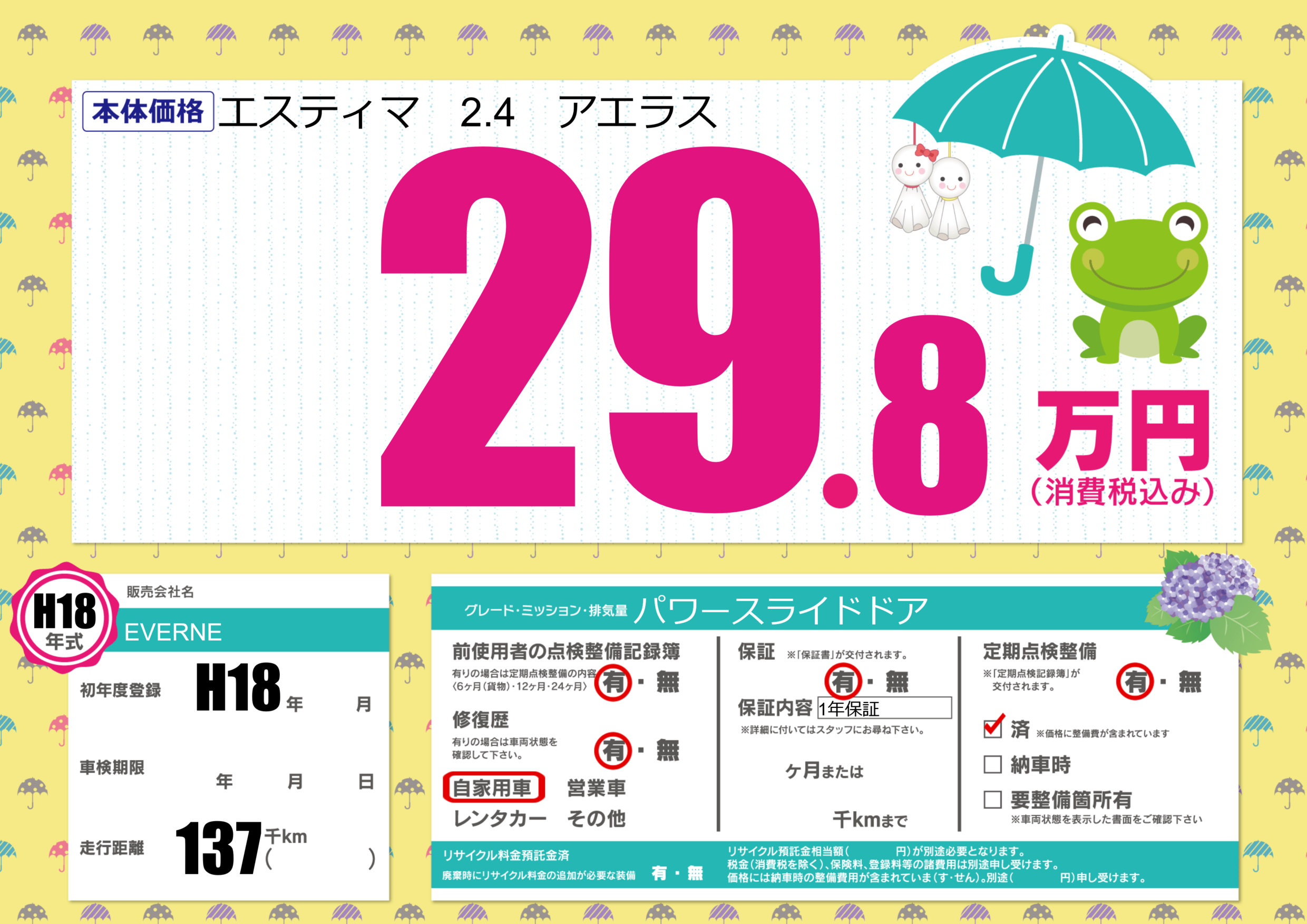 | 車名 | エスティマ 2.4 アエラス | グレード ミッション 排気量 |