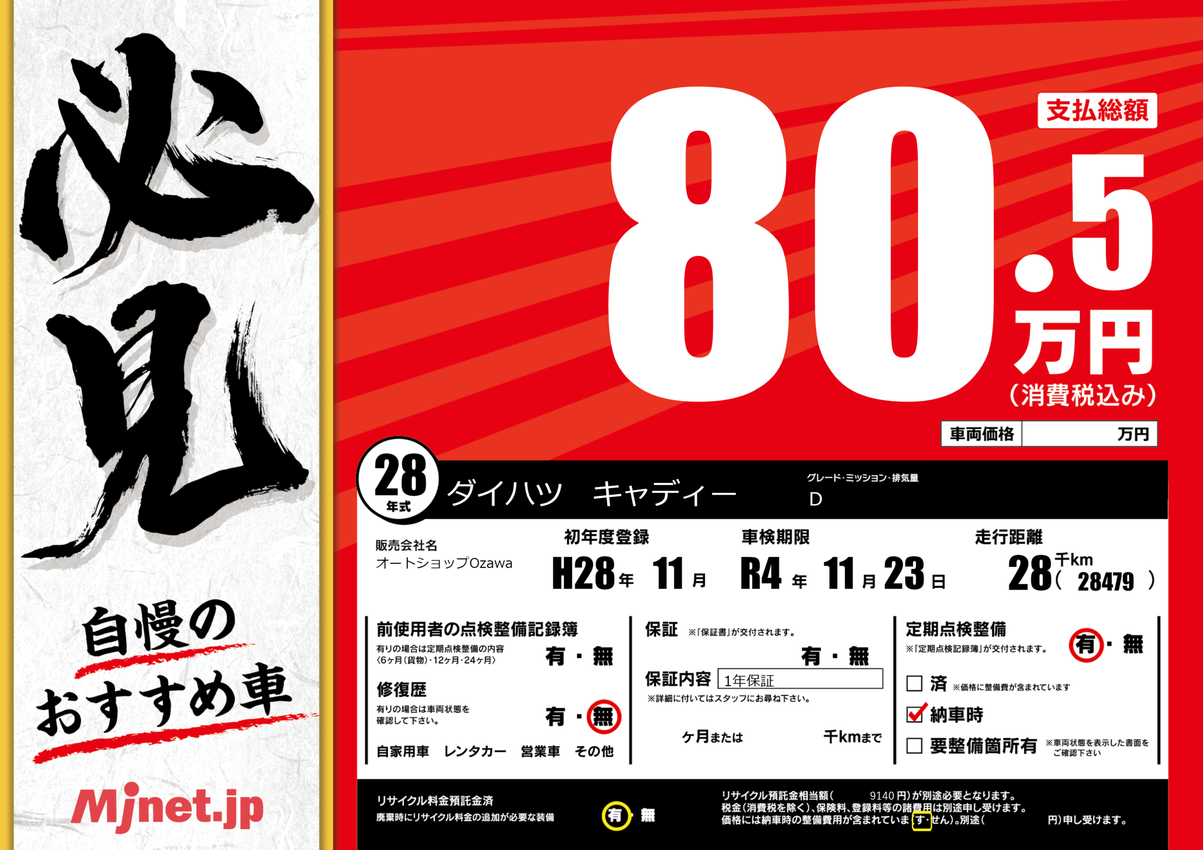保証なし 保証内容(1年保証) ---ヶ月または()千kmまで |