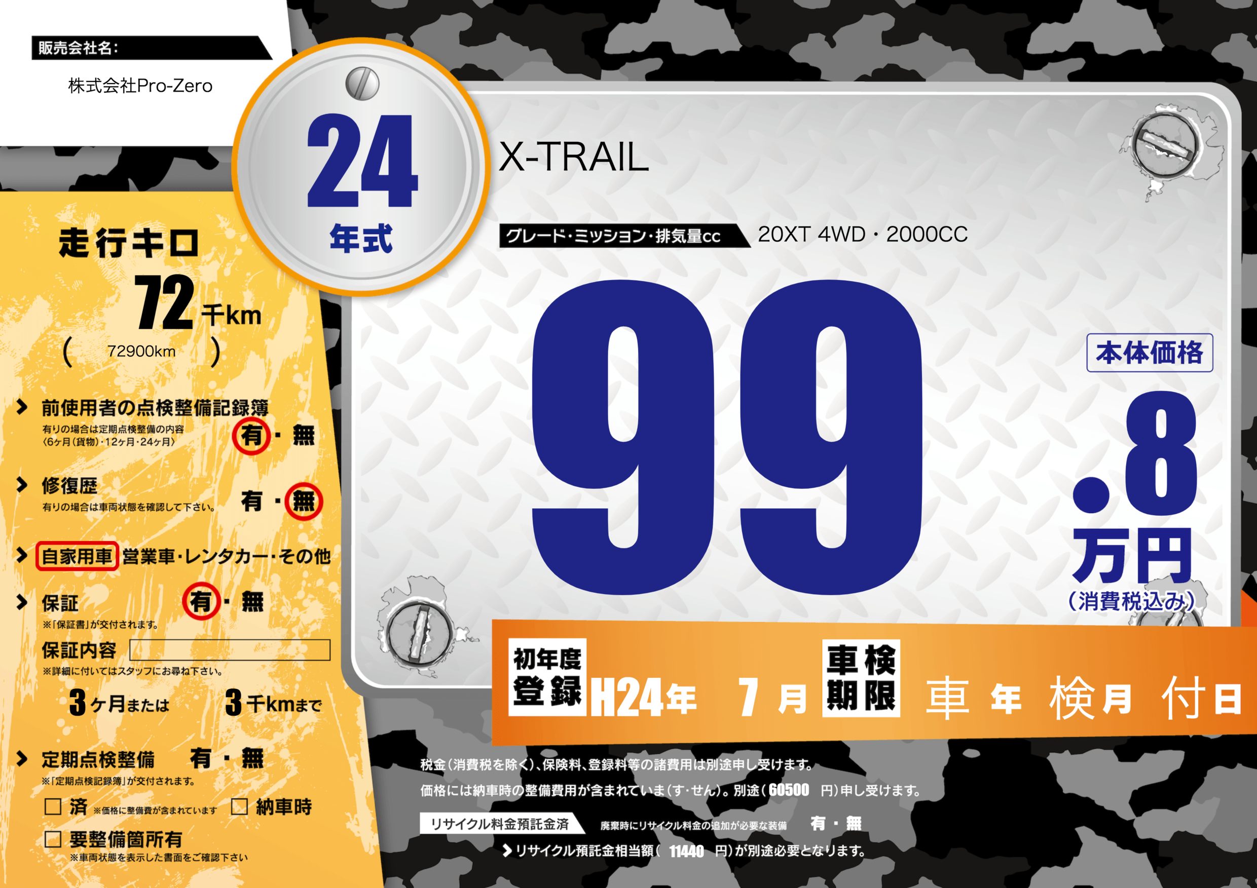 初年度登録 H24年7月