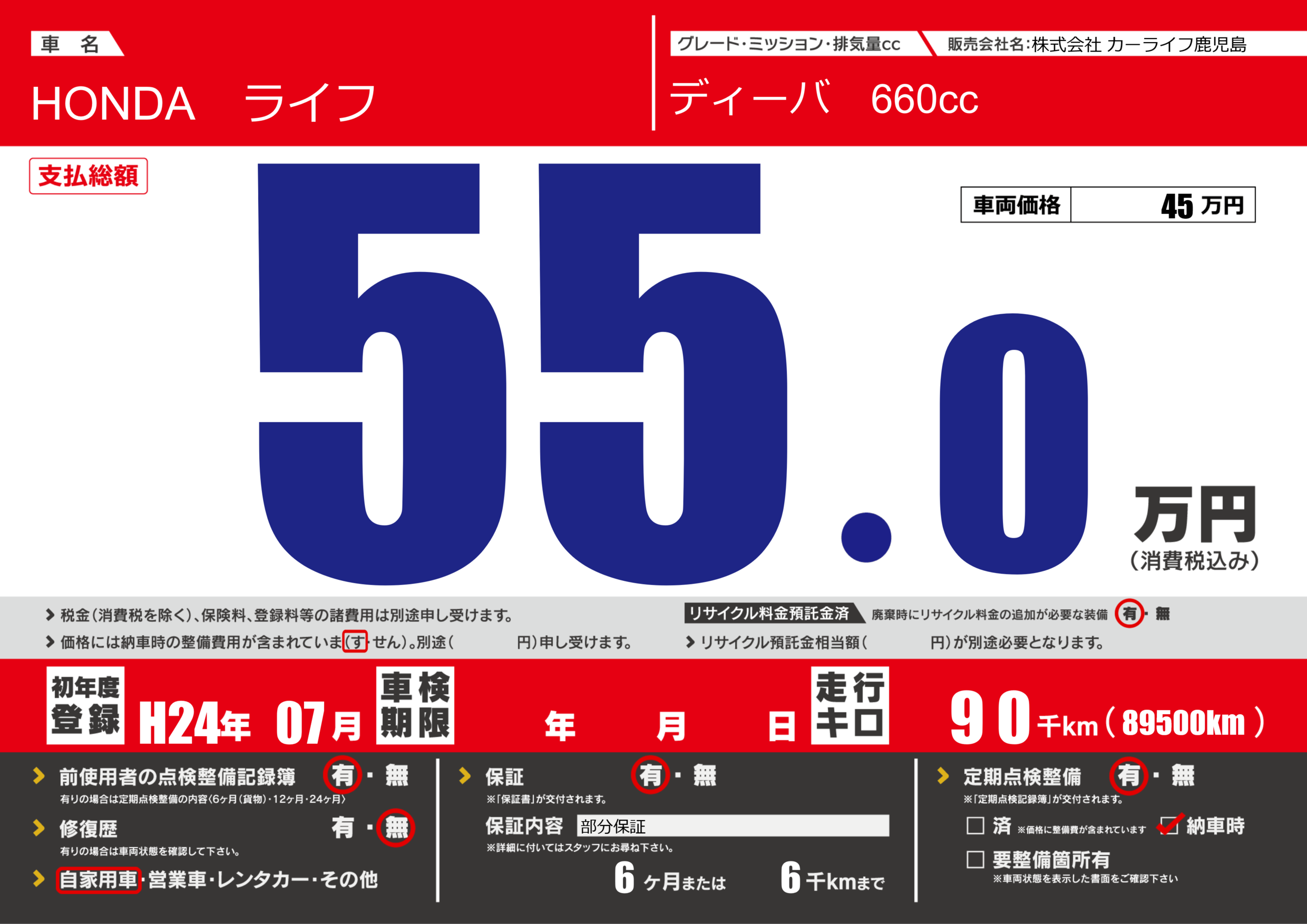 保証付き 保証内容(部分保証) 6ヶ月または(6)千kmまで |