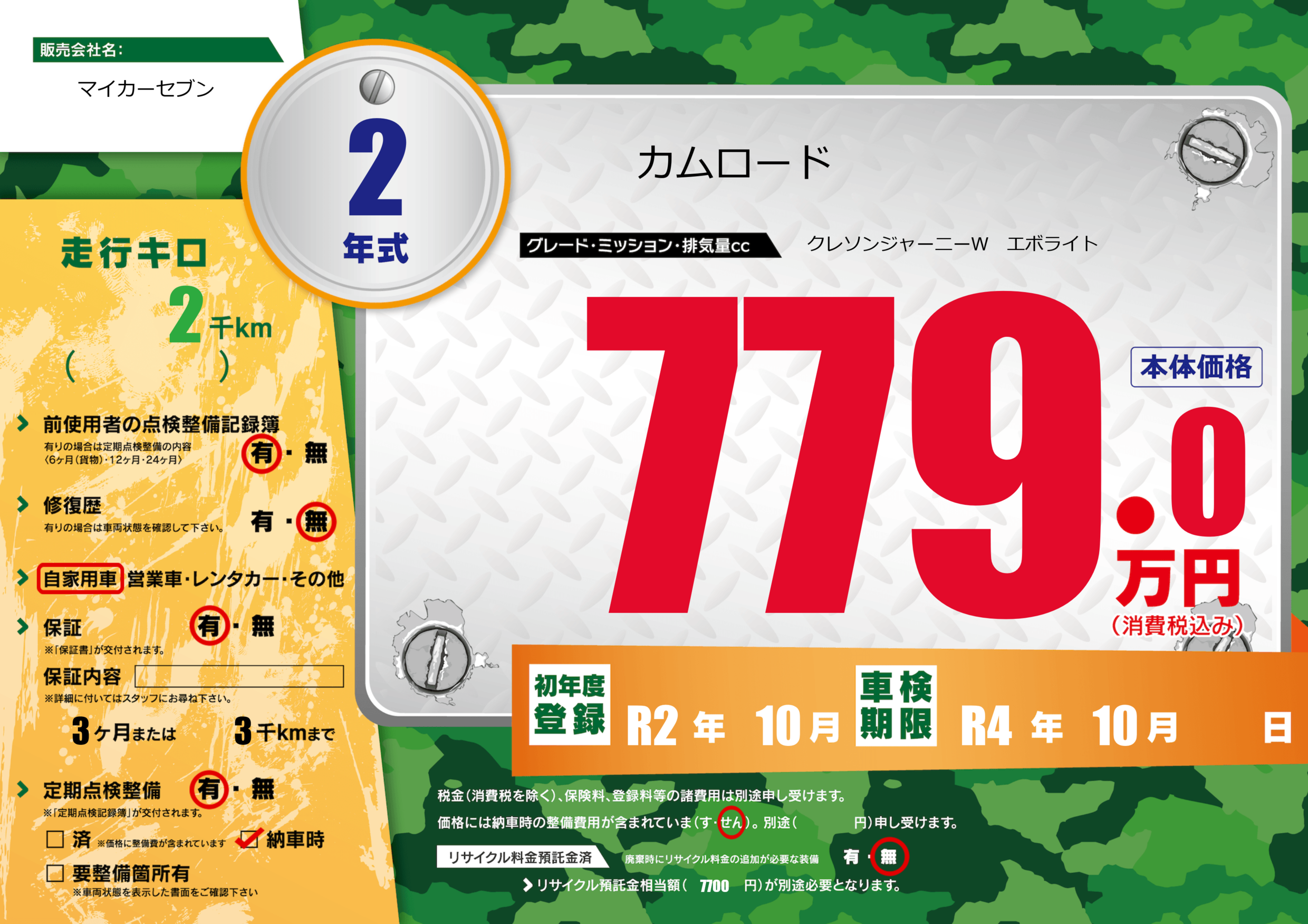 | 車名 | カムロード | グレード ミッション 排気量 |