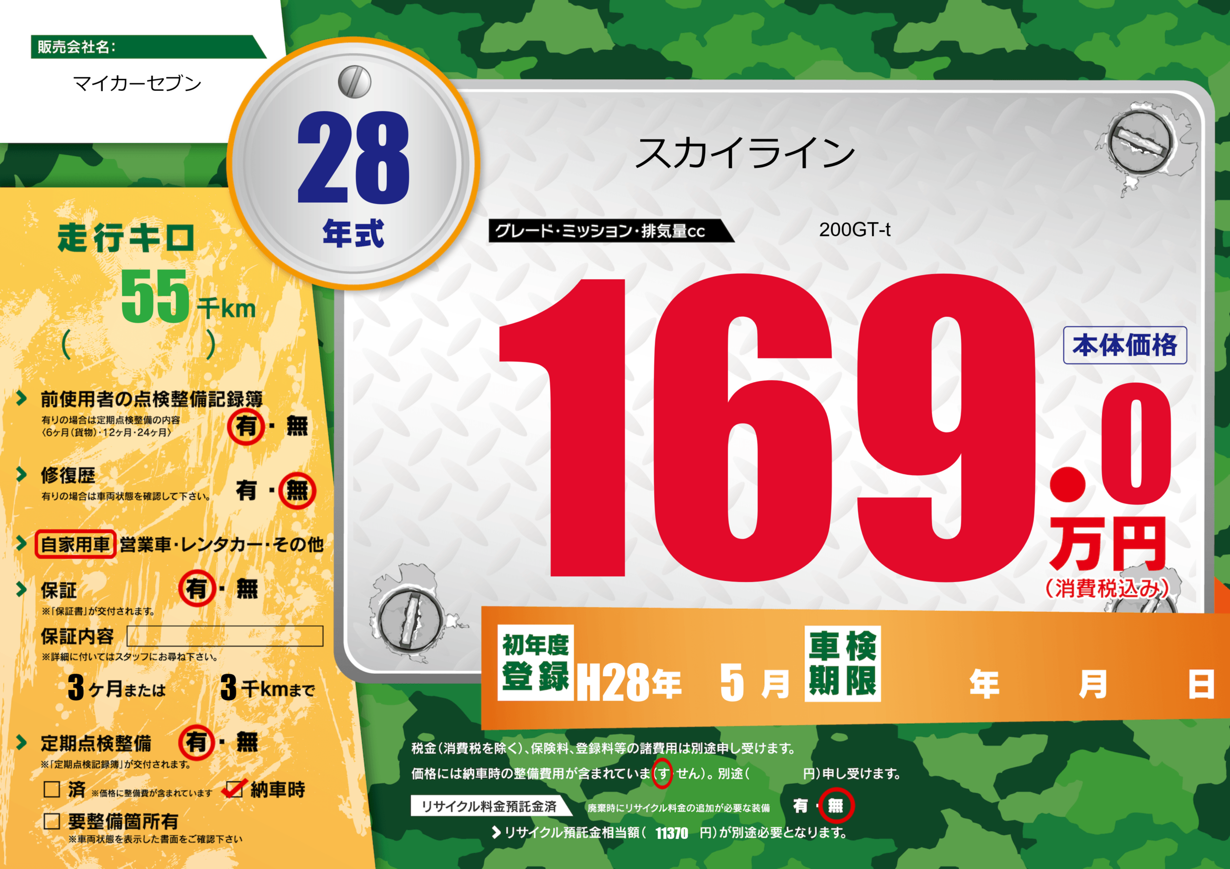 | 車名 | スカイライン | グレード ミッション 排気量 |