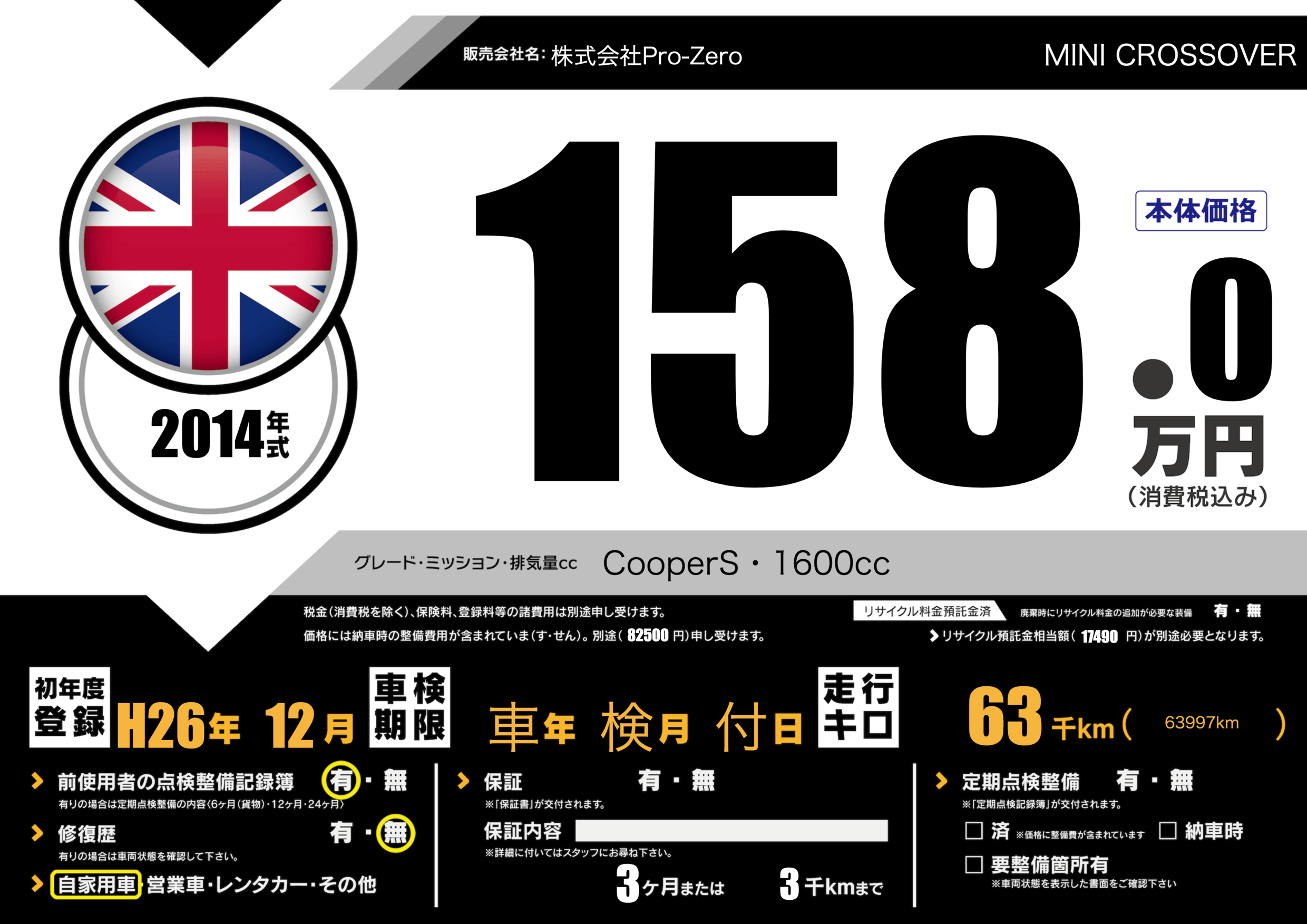 | 車名 | MINI CROSSOVER | グレード ミッション 排気量 |