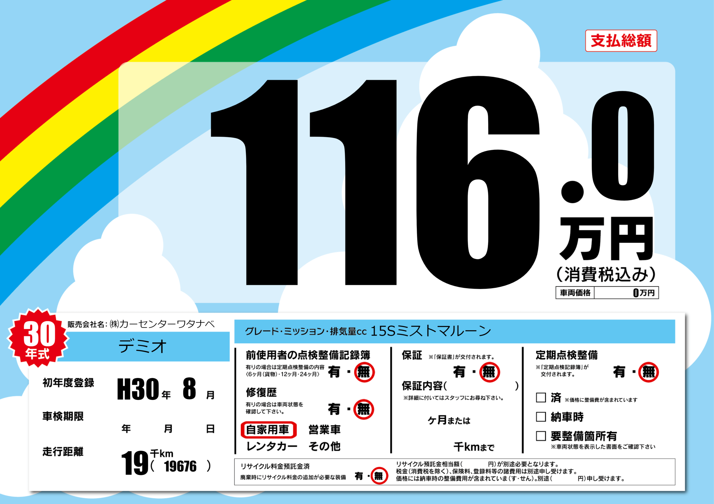 | 車名 | デミオ | グレード ミッション 排気量 |