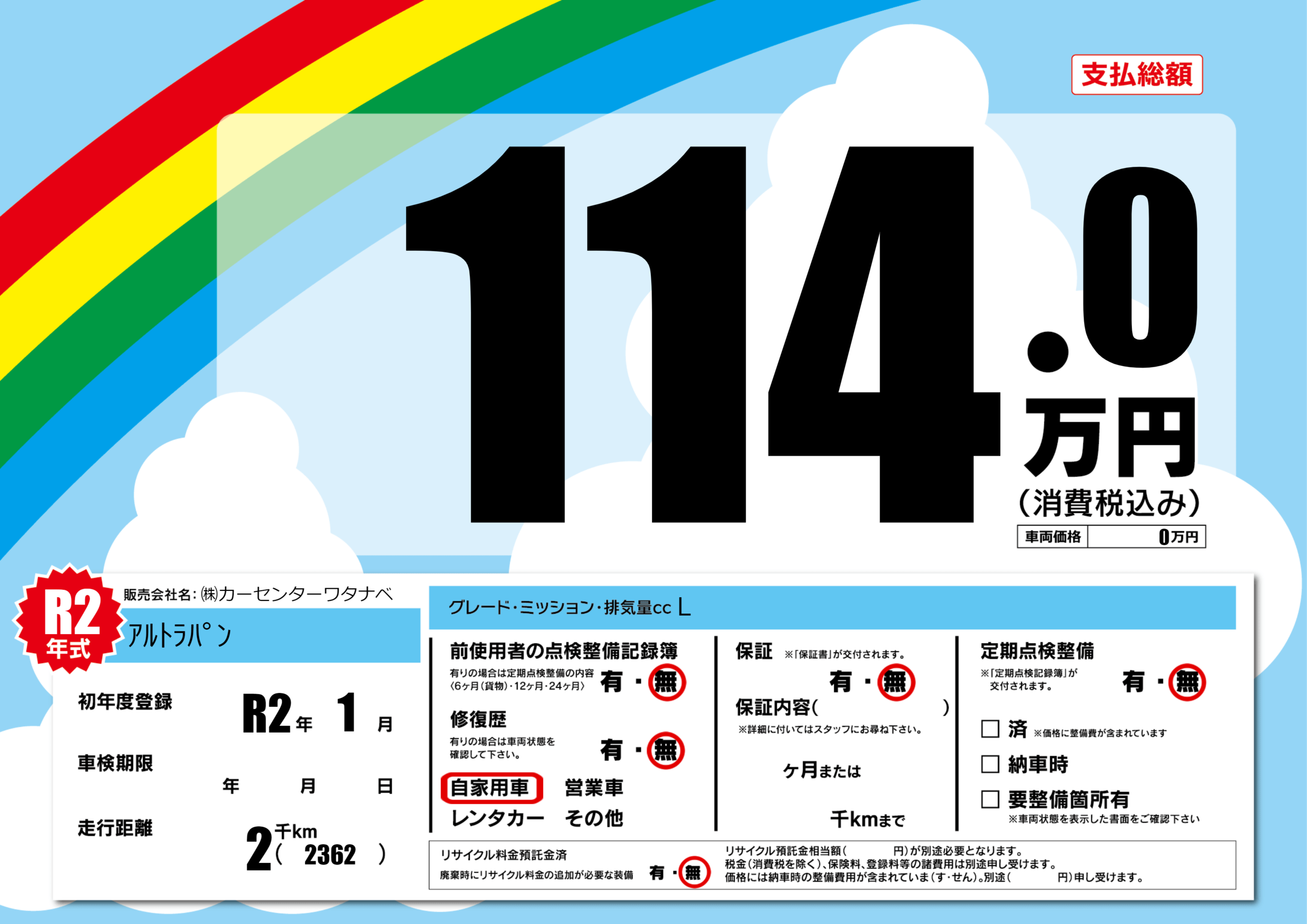 | 走行キロ | 0.2万km | 初年度登録 | R2年1月 |