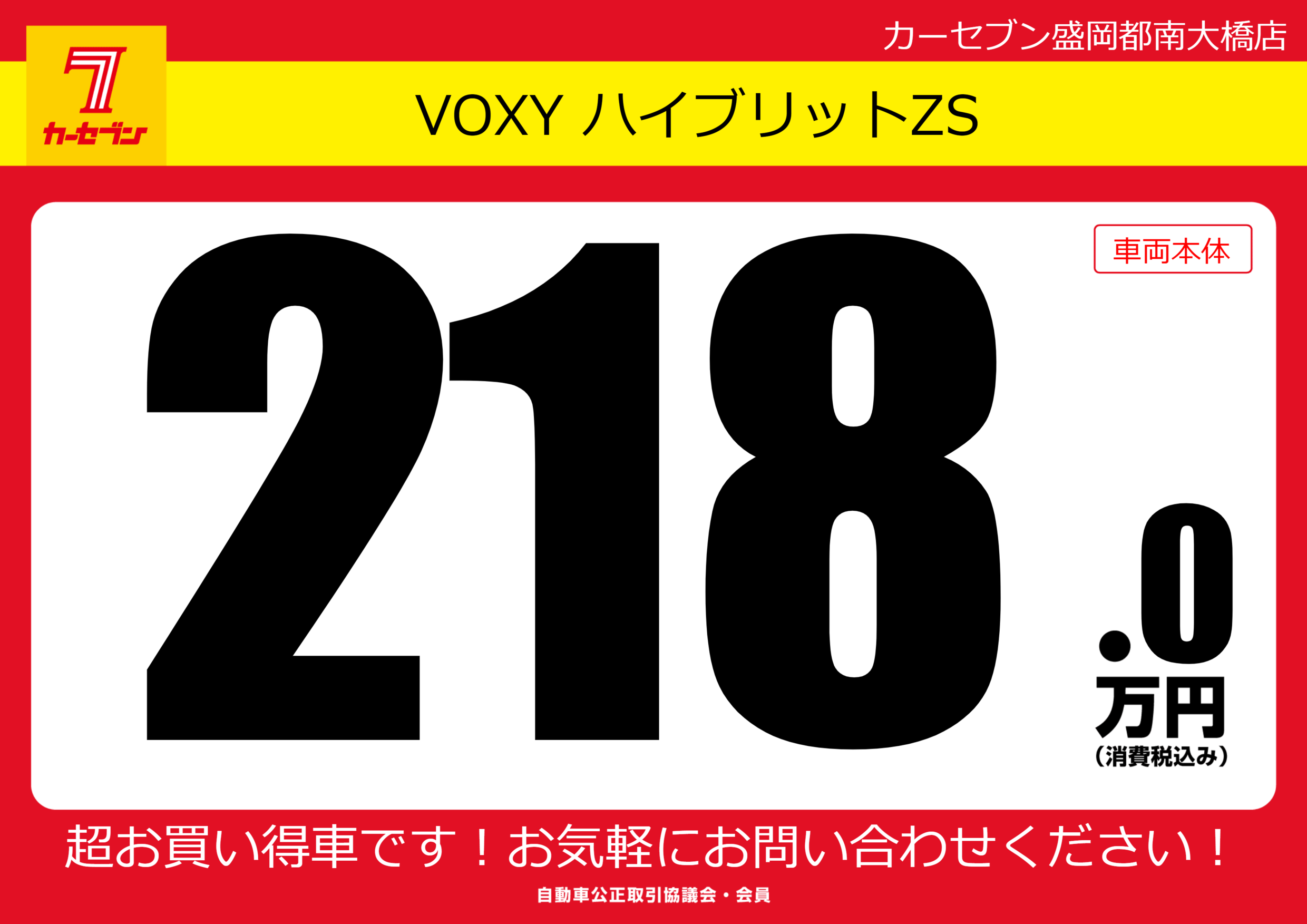 | 車名 | VOXY ハイブリットZS | グレード ミッション 排気量 |