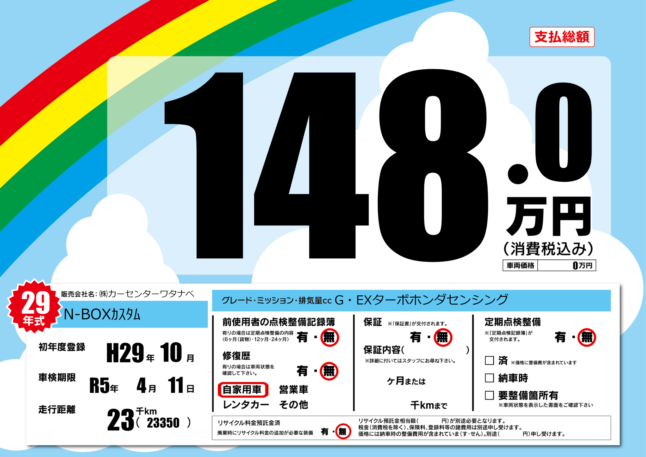 | 車名 | N-BOXカスタム | グレード ミッション 排気量 |