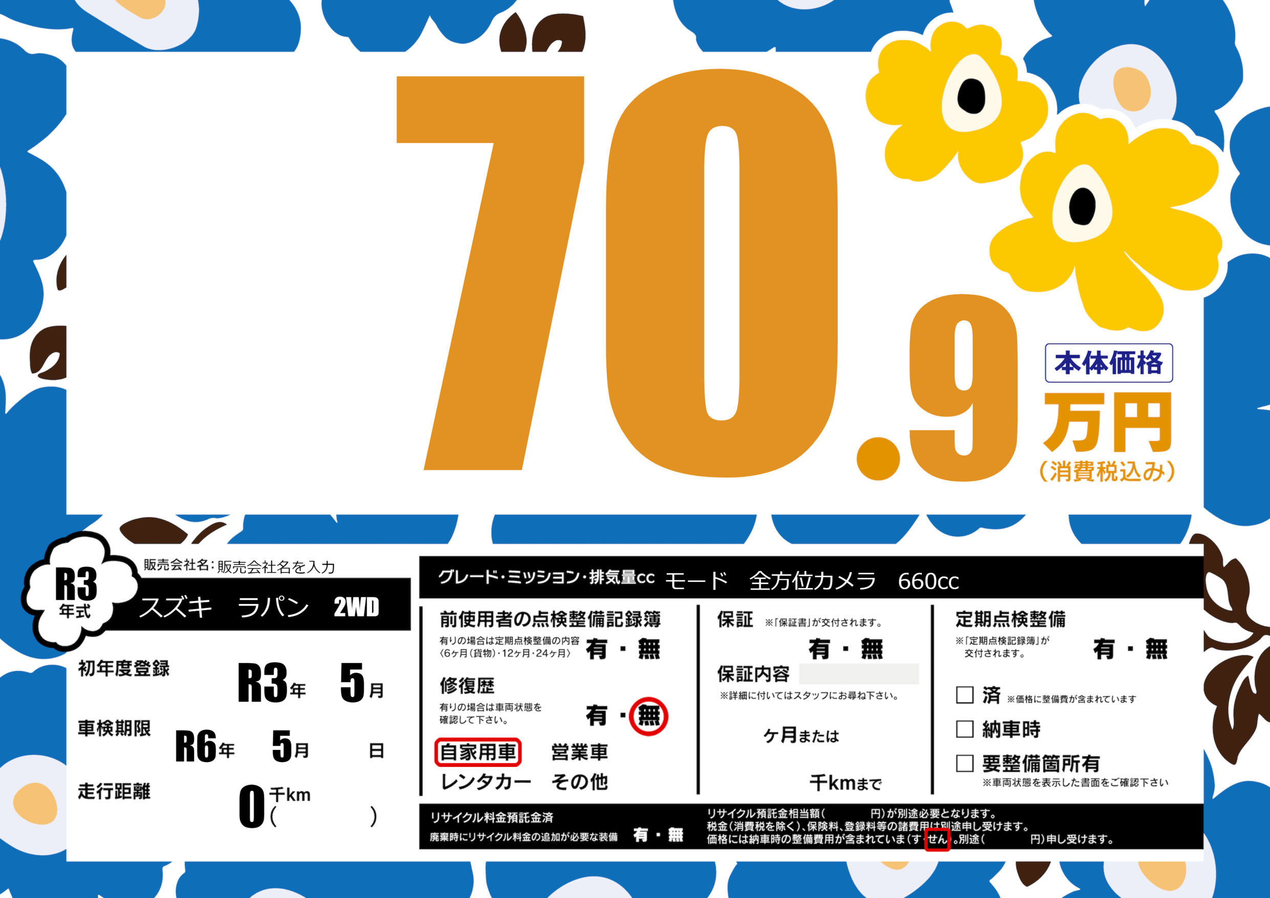 なし | 車検制限 | R6年5月---月 |