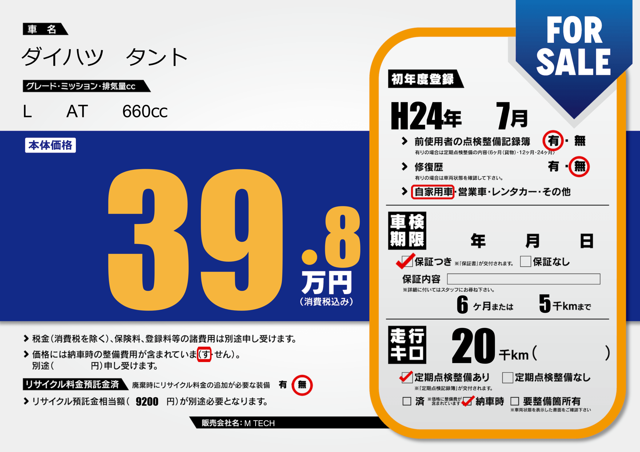 保証付き 保証内容(---) 6ヶ月または(5)千kmまで |