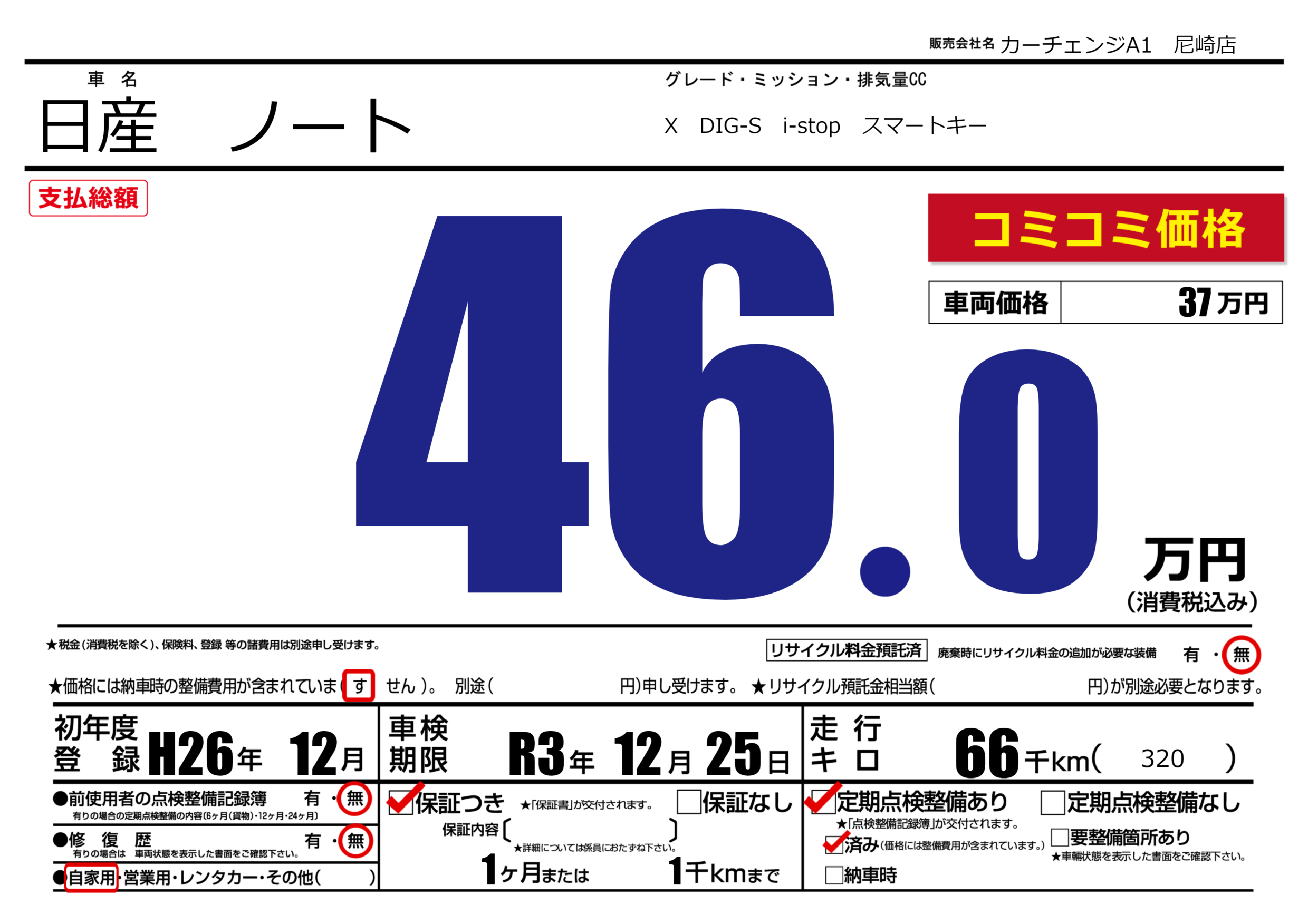 | 定期点検整備 | 定期点検整備あり 定期点検整備済み | ||