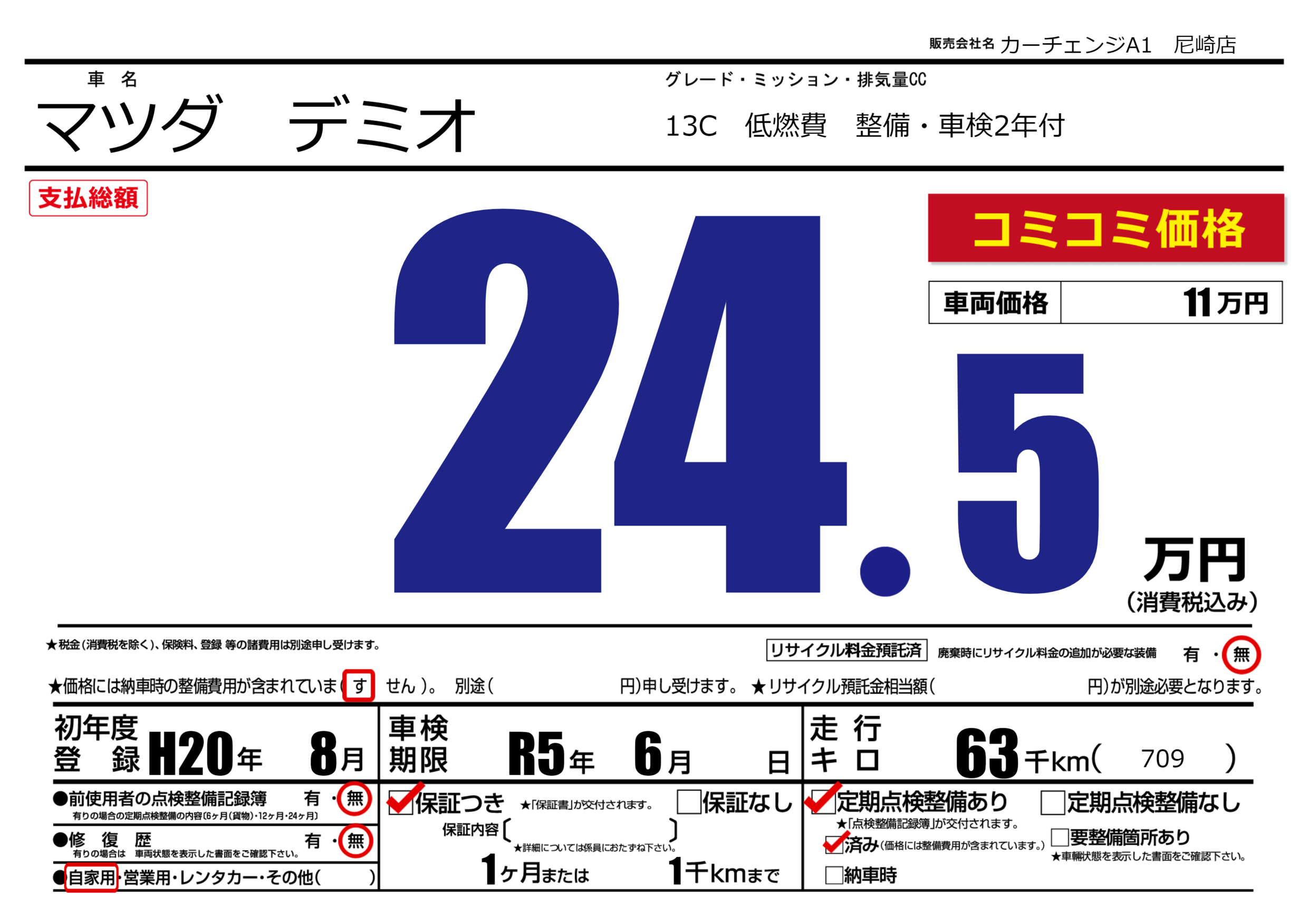 | 定期点検整備 | 定期点検整備あり 定期点検整備済み | ||