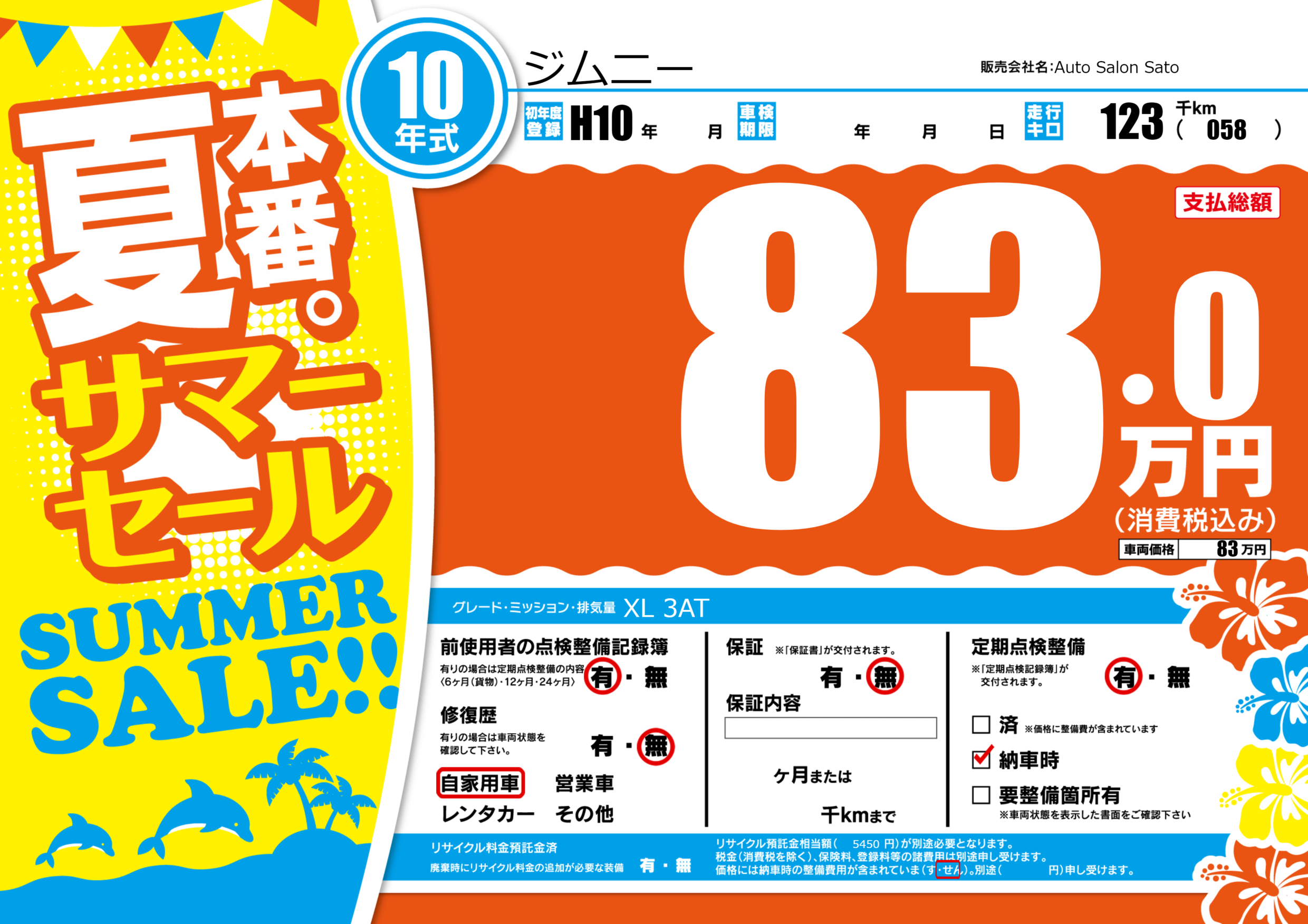 | 車名 | ジムニー | グレード ミッション 排気量 |