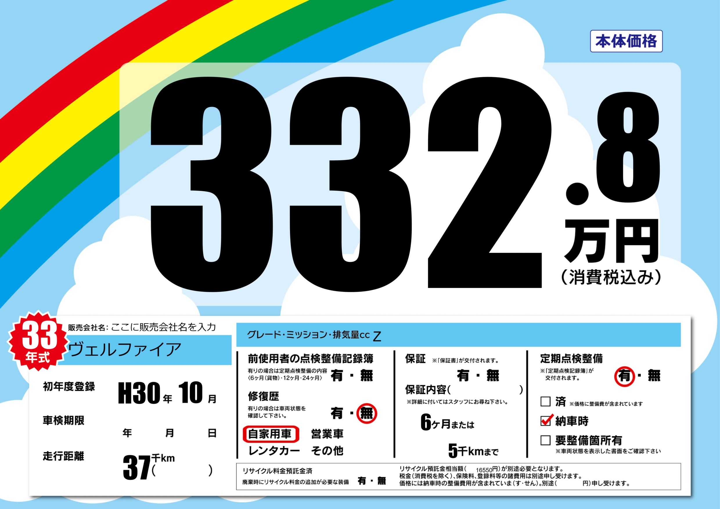 | 定期点検整備 | 定期点検整備あり 納車時あり | ||