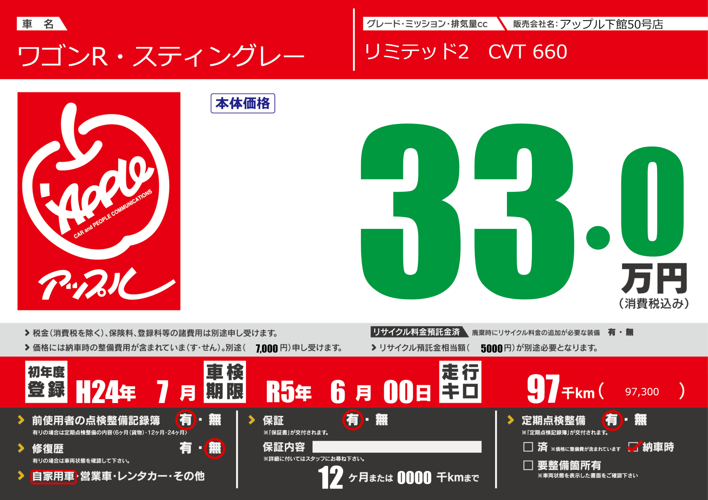 保証付き 保証内容(---) 12ヶ月または(0000)千kmまで |