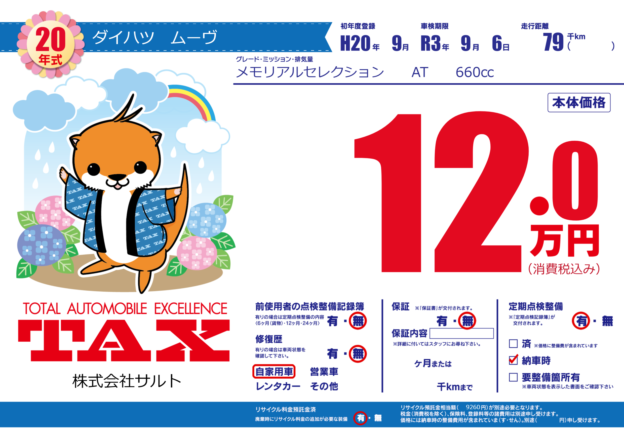 | 車名 | ダイハツ ムーヴ | グレード ミッション 排気量 |