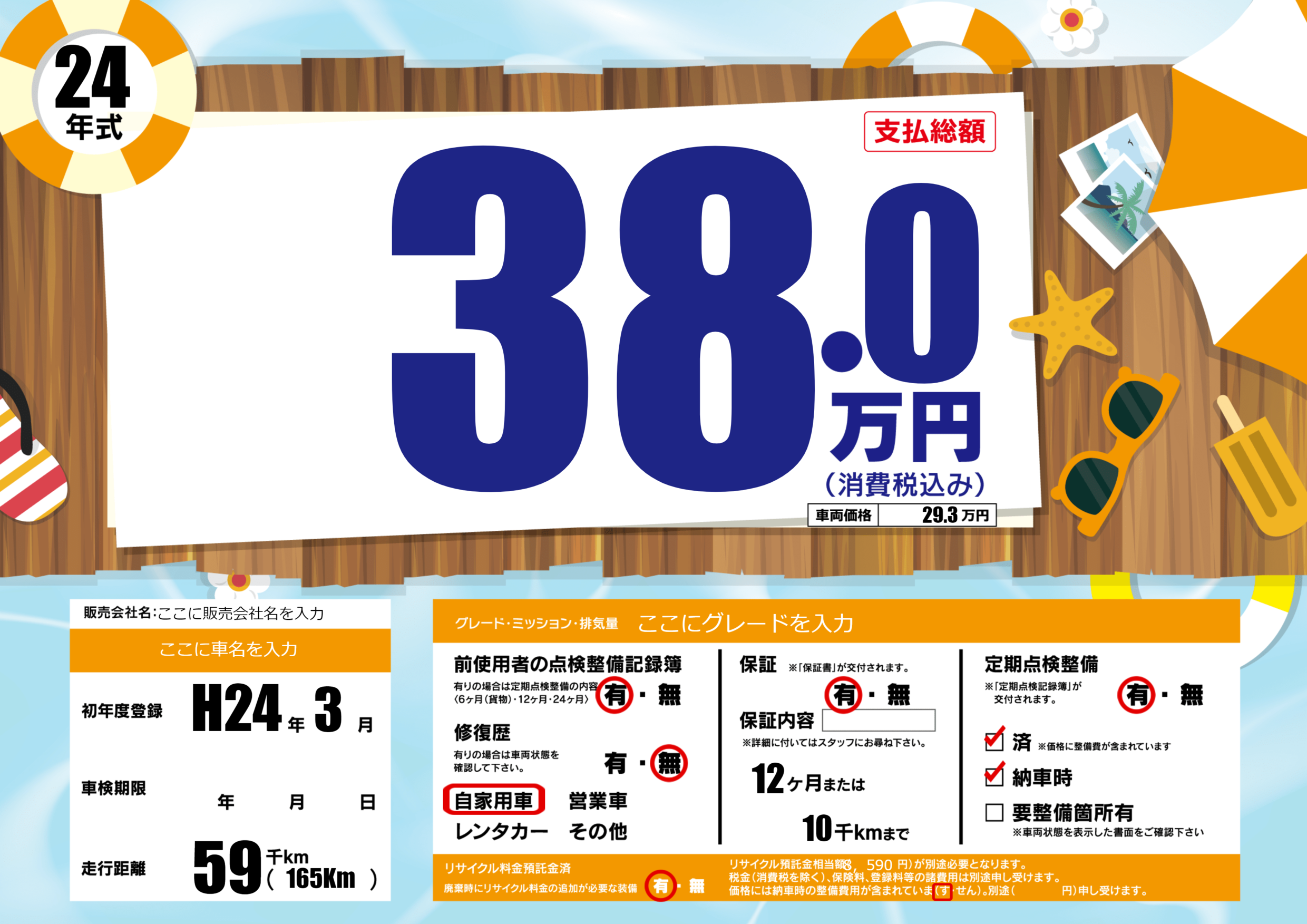 | 定期点検整備 | 定期点検整備あり 定期点検整備済み 納車時あり | ||