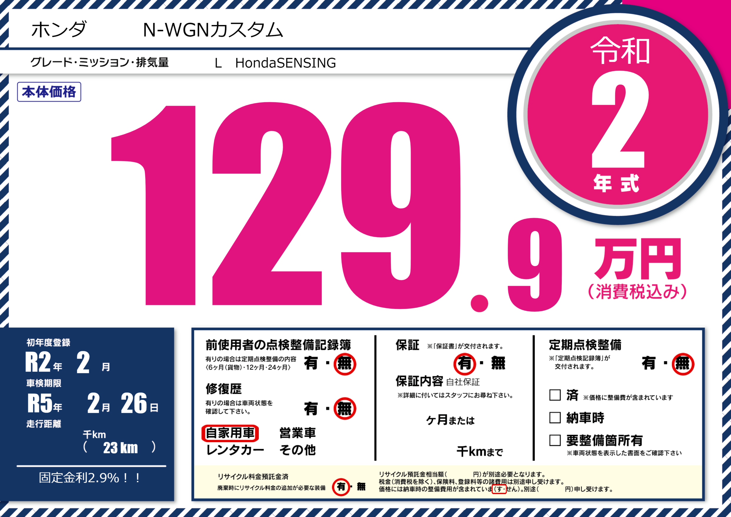 | 走行キロ | - | 初年度登録 | R2年2月 |
