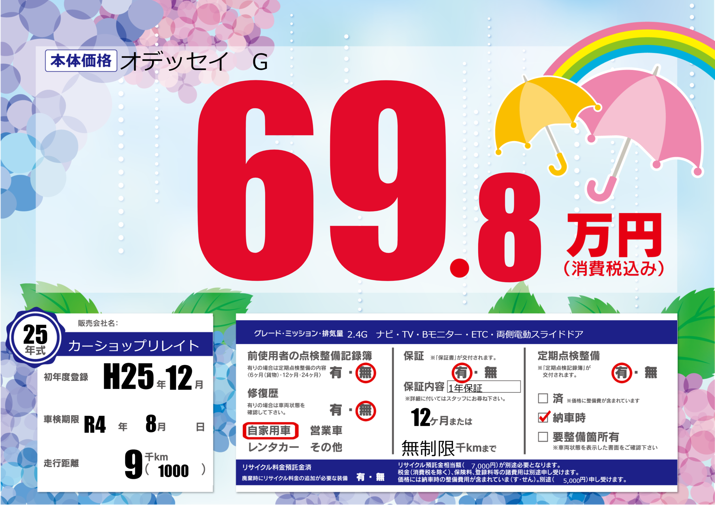 車検制限 | R4年8月---月 |