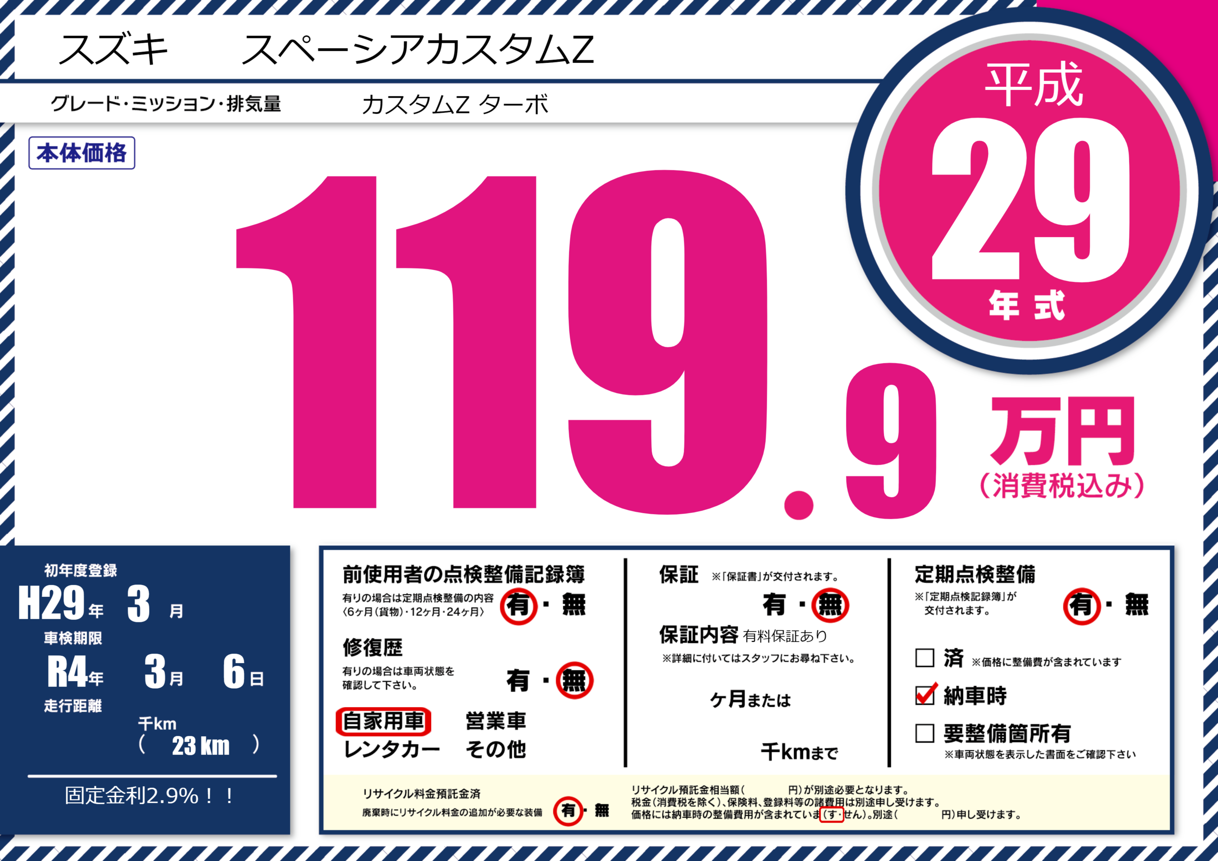 | 走行キロ | - | 初年度登録 | H29年3月 |