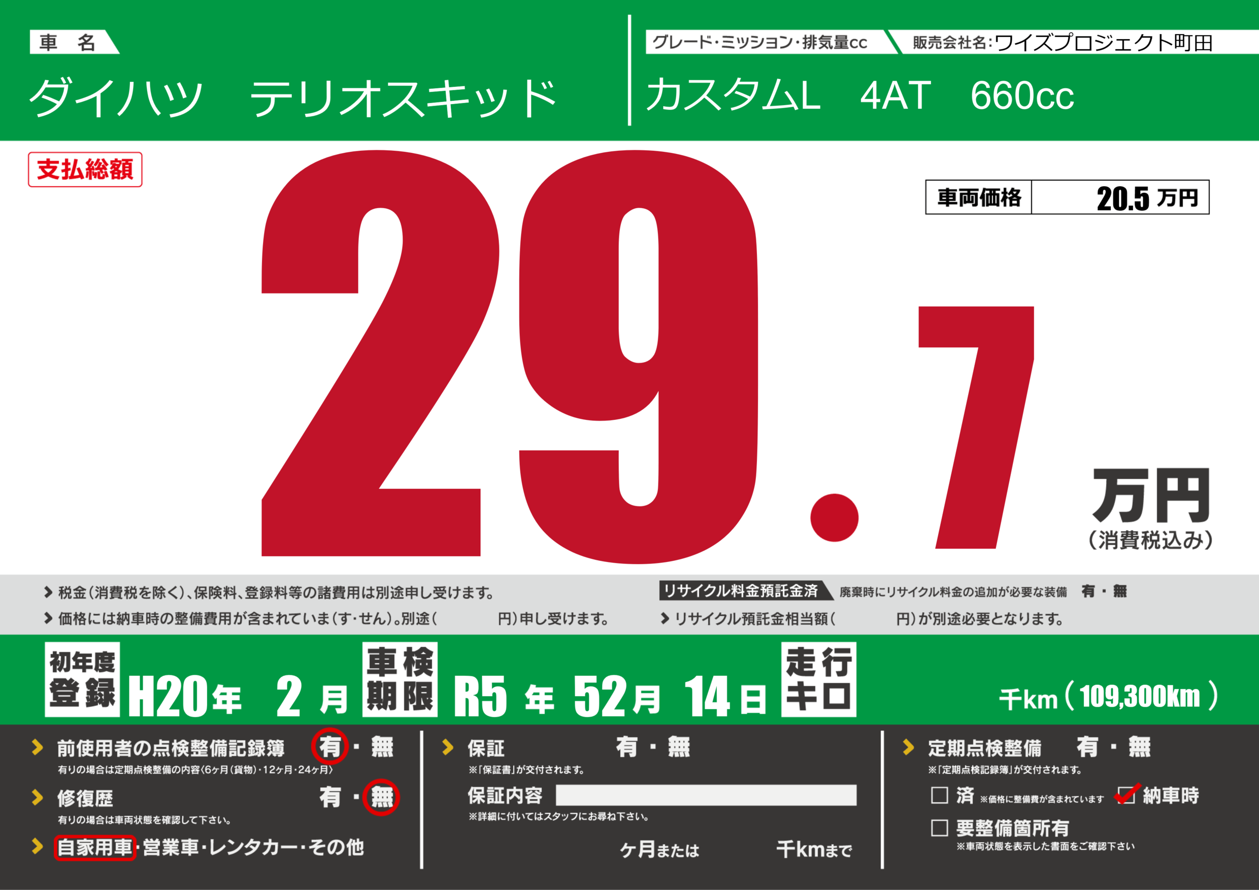 | 定期点検整備 | 納車時あり | ||