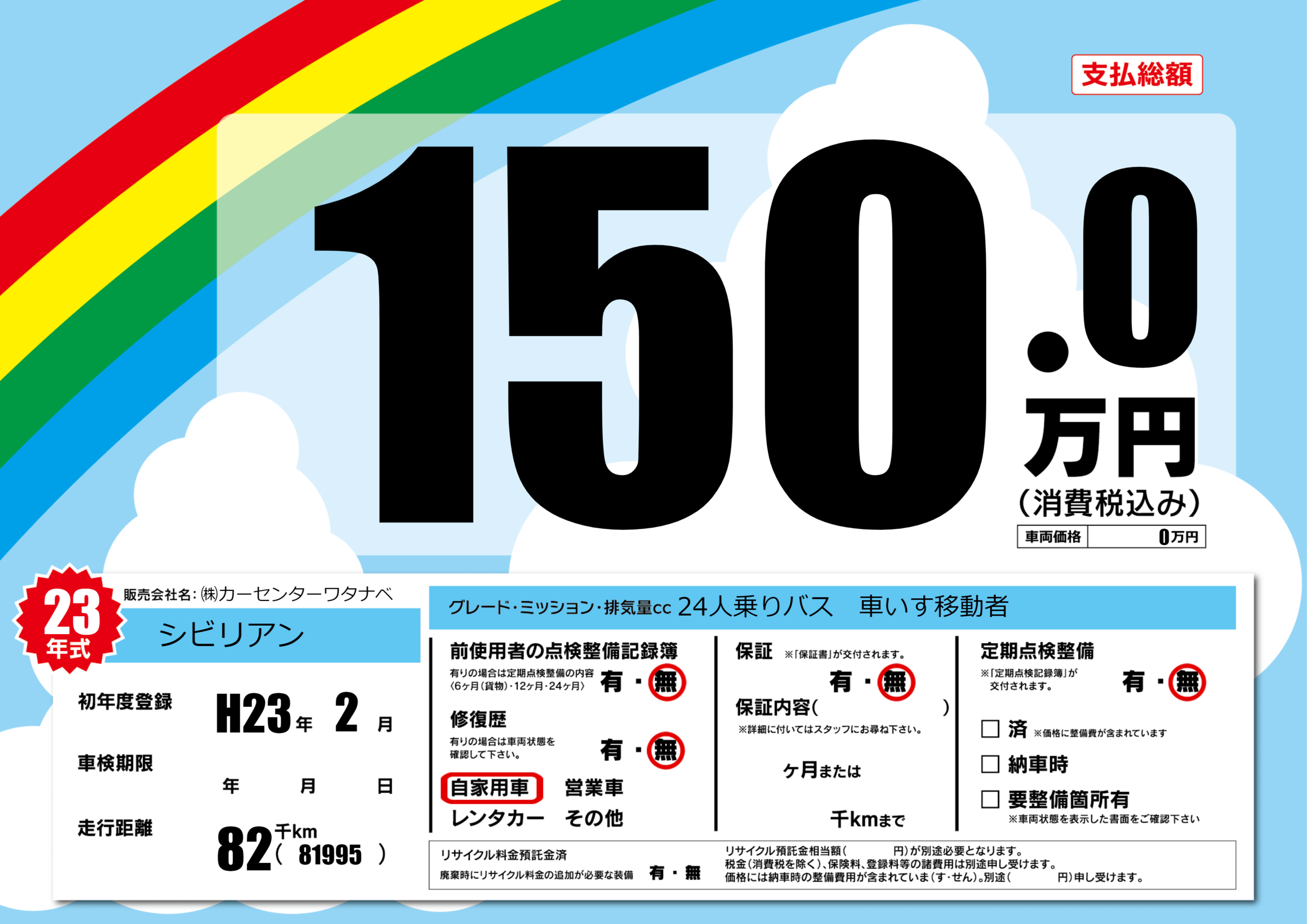 | 走行キロ | 8.2万km | 初年度登録 | H23年2月 |