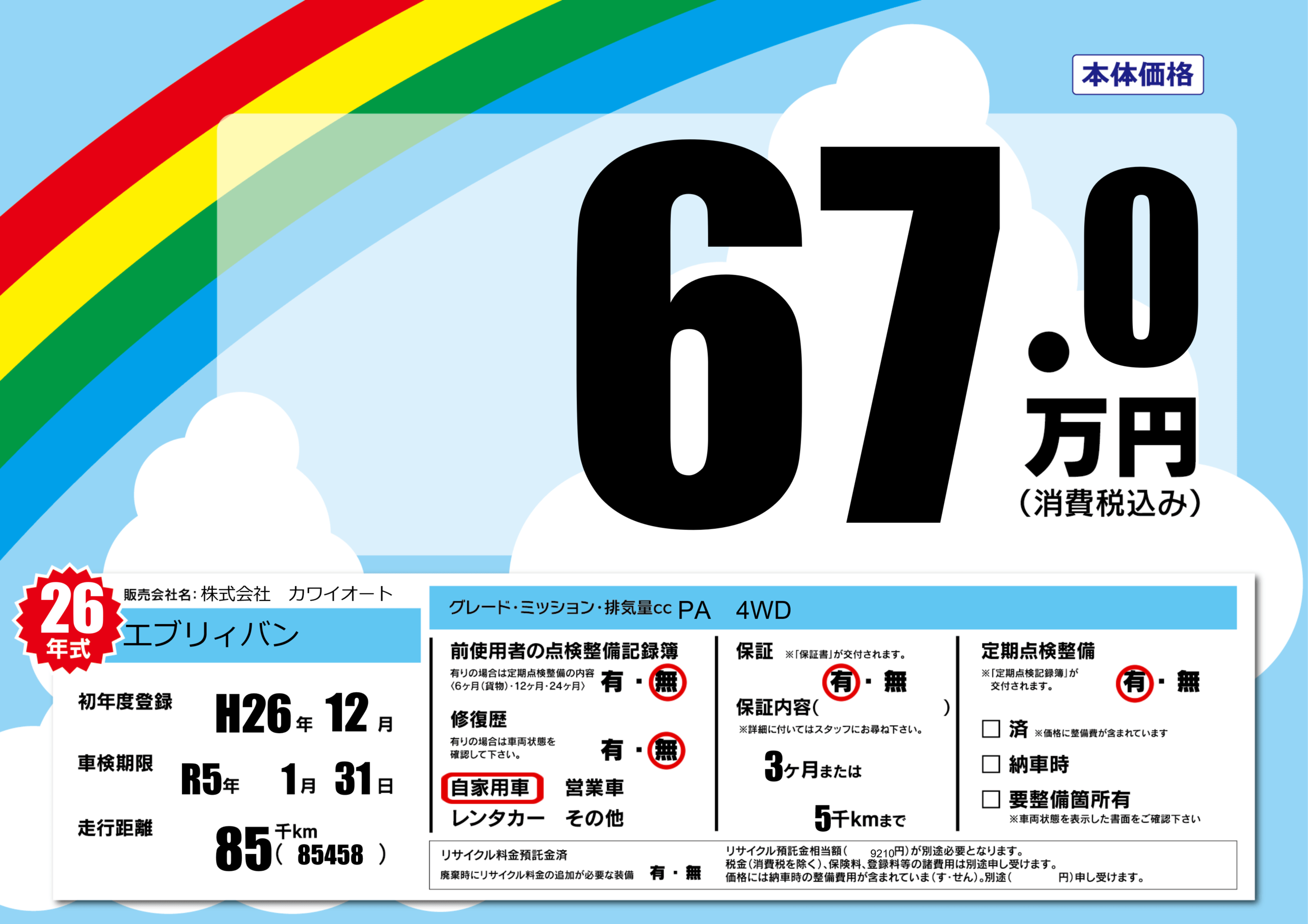 | 車名 | エブリィバン | グレード ミッション 排気量 |