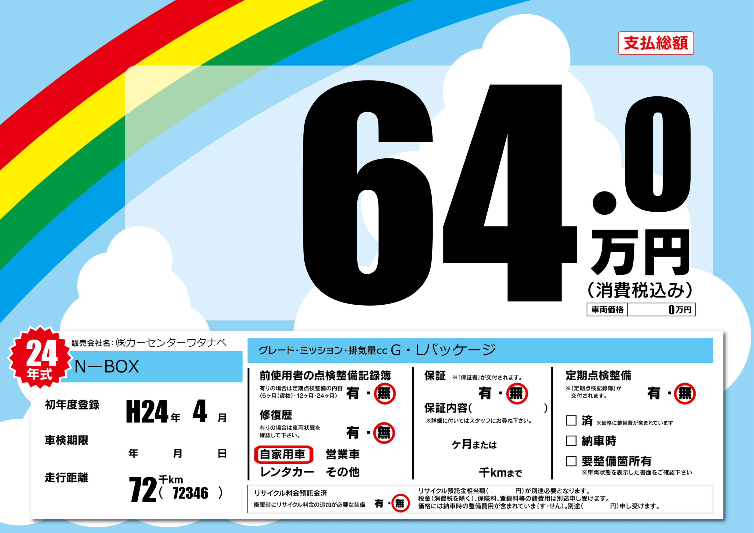 | 車名 | NーBOX | グレード ミッション 排気量 |