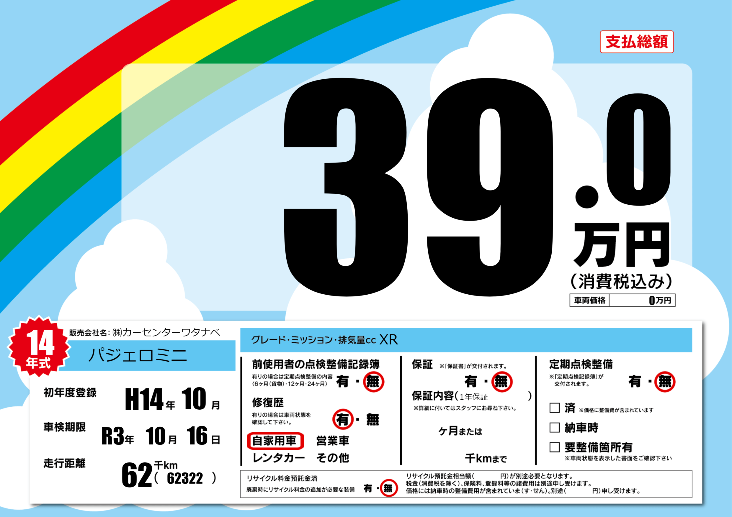 | 車名 | パジェロミニ | グレード ミッション 排気量 |